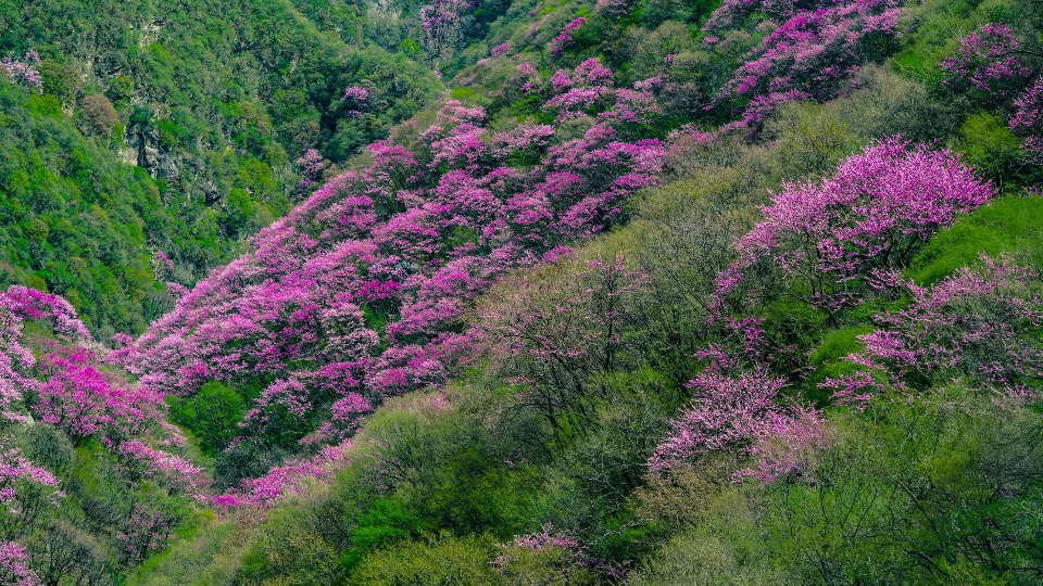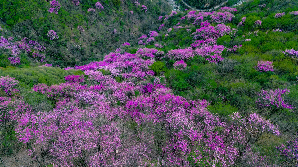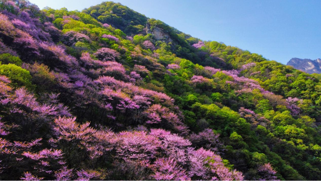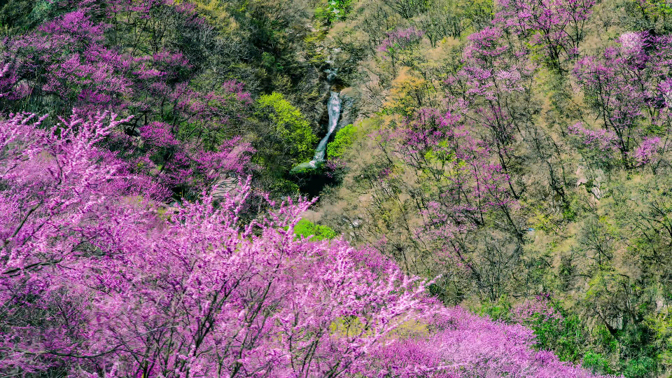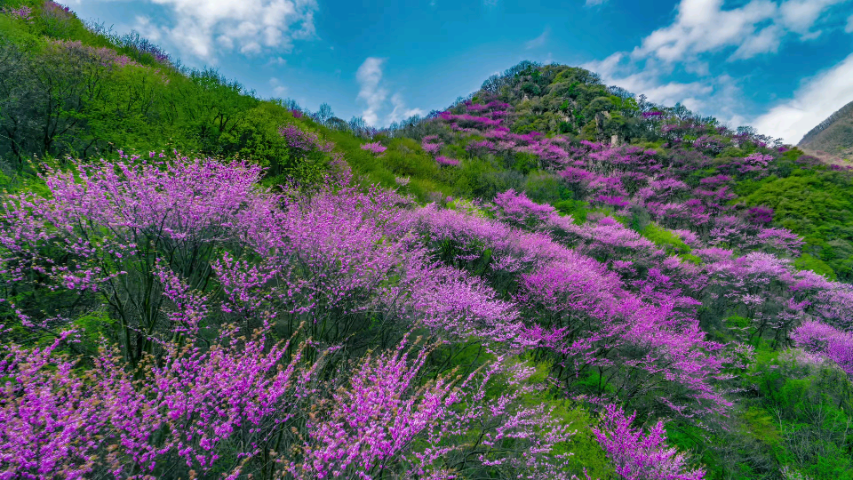 秦嶺北麓萬畝紫荊盛開。