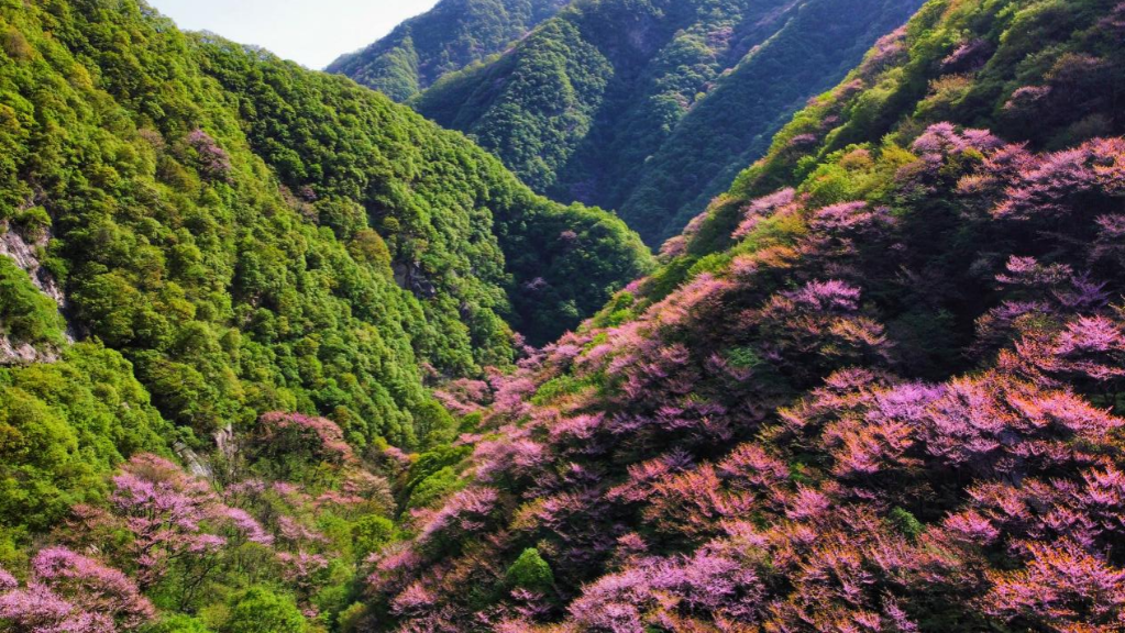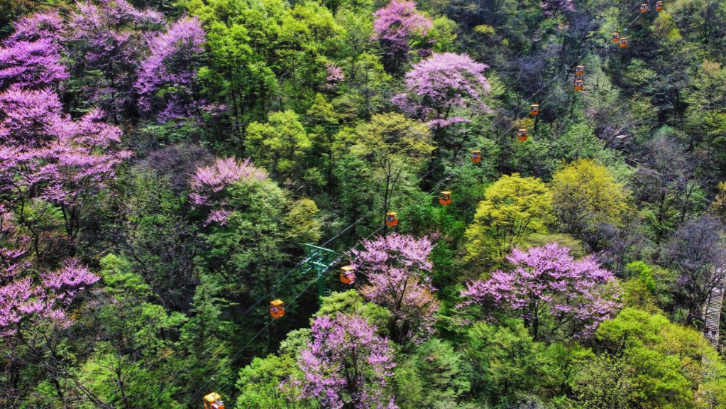 4月中旬,位于陜西省西安市鄠邑區(qū)的太平國家森林公園萬畝紫荊迎來盛放期,漫山的紫荊花與秦嶺山巒交相輝映,游人乘纜車穿行花海,秦嶺紫荊美景盡收眼底。據(jù)悉,太平國家森林公園位于秦嶺北麓西安段,是終南山世界地質(zhì)公園的核心景區(qū)。(郝云菲)