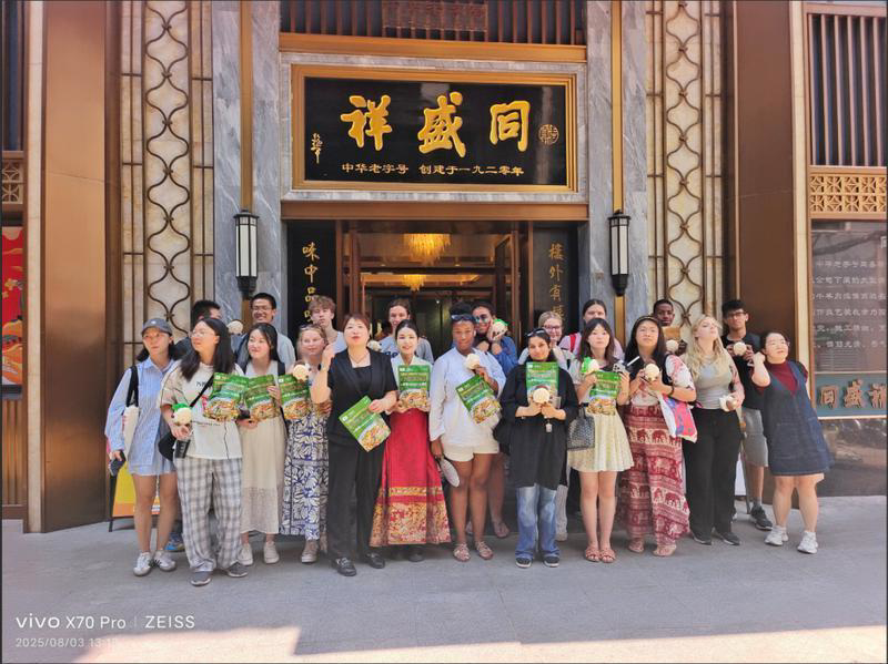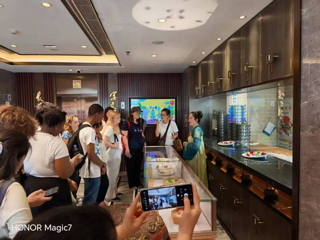 文明的深度對(duì)話,同樣在西安街頭巷尾升騰的煙火氣中熱烈展開。訪學(xué)團(tuán)走進(jìn)西安飯莊、德發(fā)長(zhǎng)餃子館、同盛祥、清雅齋、西安烤鴨店等承載著城市記憶的中華老字號(hào)。在非遺大師的引導(dǎo)下,青年學(xué)子們親手掰開一塊塊坨坨饃,感受饃粒大小對(duì)湯汁吸收的微妙影響;嘗試捏出形態(tài)各異的花樣餃子,體驗(yàn)指尖上的匠心……這不僅是味蕾的盛宴,更是理解西安生活美學(xué)、感悟中華飲食“食不厭精,膾不厭細(xì)”智慧的獨(dú)特課堂。