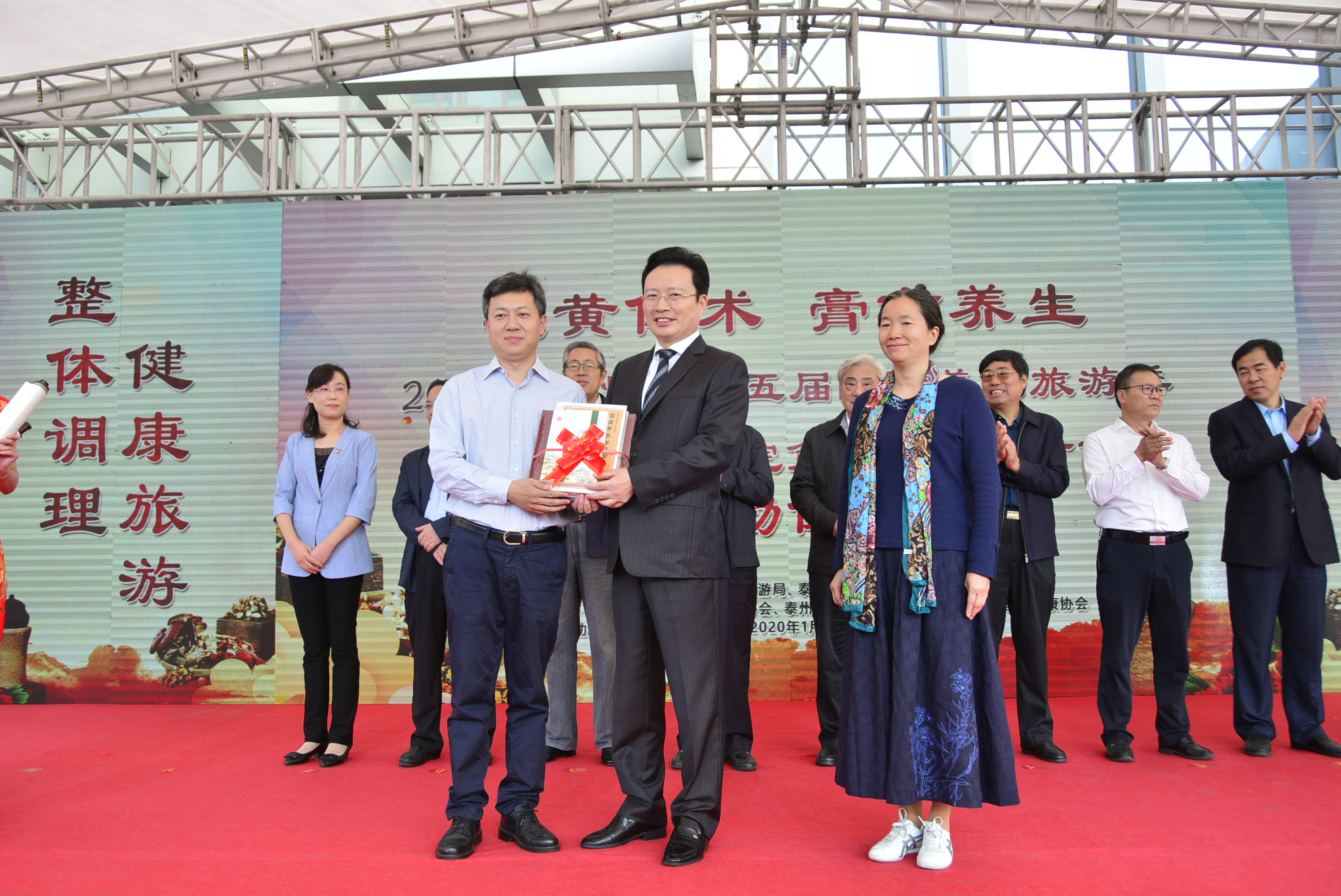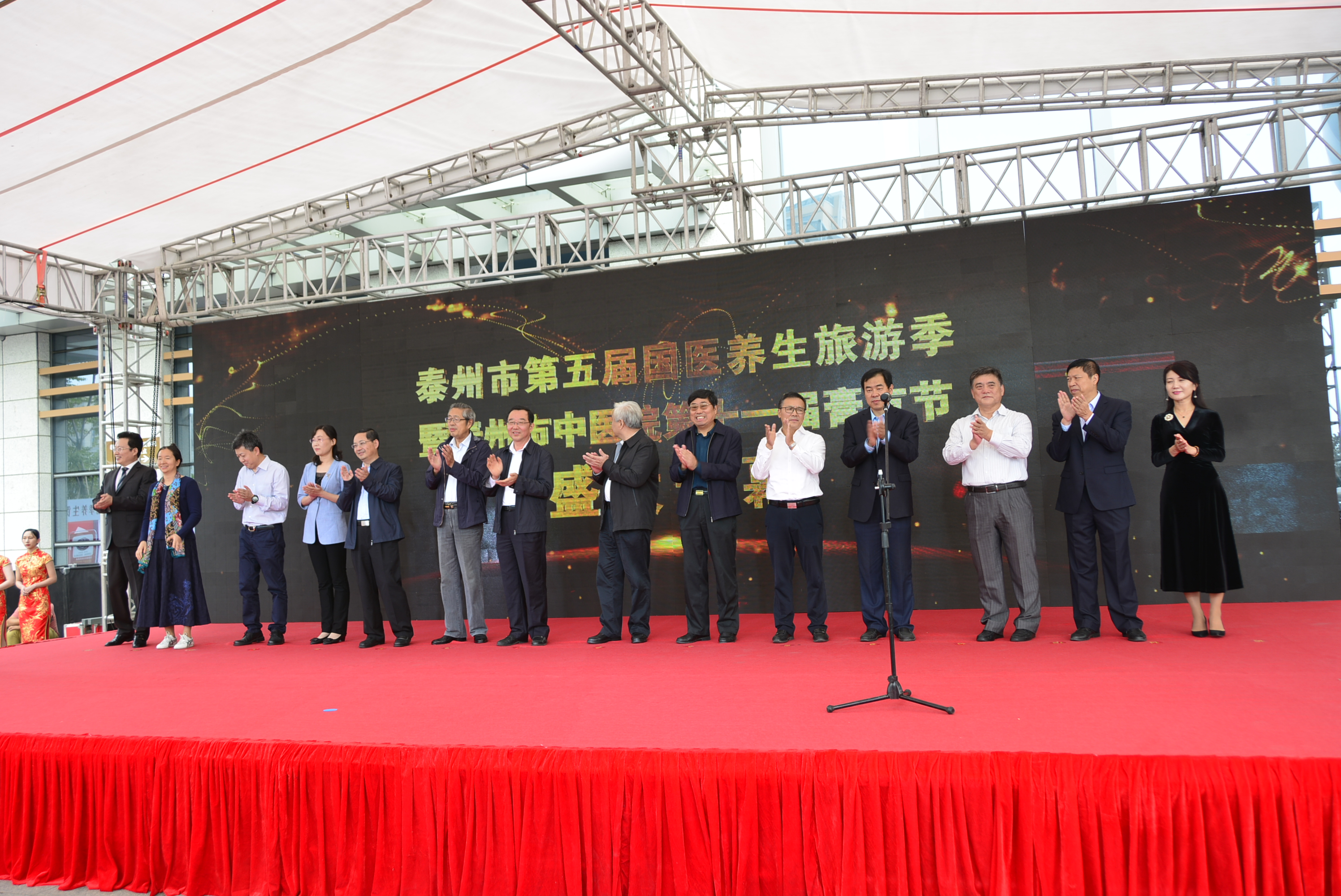 泰州市政協(xié)副主席繆云忠,全國名老中醫(yī)、同濟大學(xué)中醫(yī)研究所副所長顏乾麟,泰州市老年健康協(xié)會會長張正方,泰州市老科技工作者協(xié)會會長戴勝利,泰州市衛(wèi)生健康委員會主任劉宏鳴,泰州市科學(xué)技術(shù)協(xié)會主席楊國華,泰州市總工會副調(diào)研員楊小敏,泰州市文化廣電和旅游局副局長王瑾,中國中醫(yī)科學(xué)院廣安門醫(yī)院教育處處長姚魁武,山東省泰安市中醫(yī)醫(yī)院院長陳濤,中國中醫(yī)科學(xué)院廣安門醫(yī)院主任醫(yī)師、國醫(yī)大師薛伯壽工作站負責(zé)人薛燕星,泰州市衛(wèi)生健康委員會副主任翟德祥,泰州市中醫(yī)院院長王華,泰州市城管局政治部主任黃順宏,江蘇樂百年健康小鎮(zhèn)總經(jīng)理吳妍,以及泰州市各行業(yè)優(yōu)秀模范代表、先進工作者,泰州市中醫(yī)醫(yī)聯(lián)體成員單位代表,泰州市中醫(yī)院領(lǐng)導(dǎo)班子成員、職能處室及醫(yī)務(wù)人員代表,養(yǎng)生旅游專線游客等出席了本次開幕式。會議由泰州市旅游協(xié)會副會長、旅行社協(xié)會會長陳楠主持。