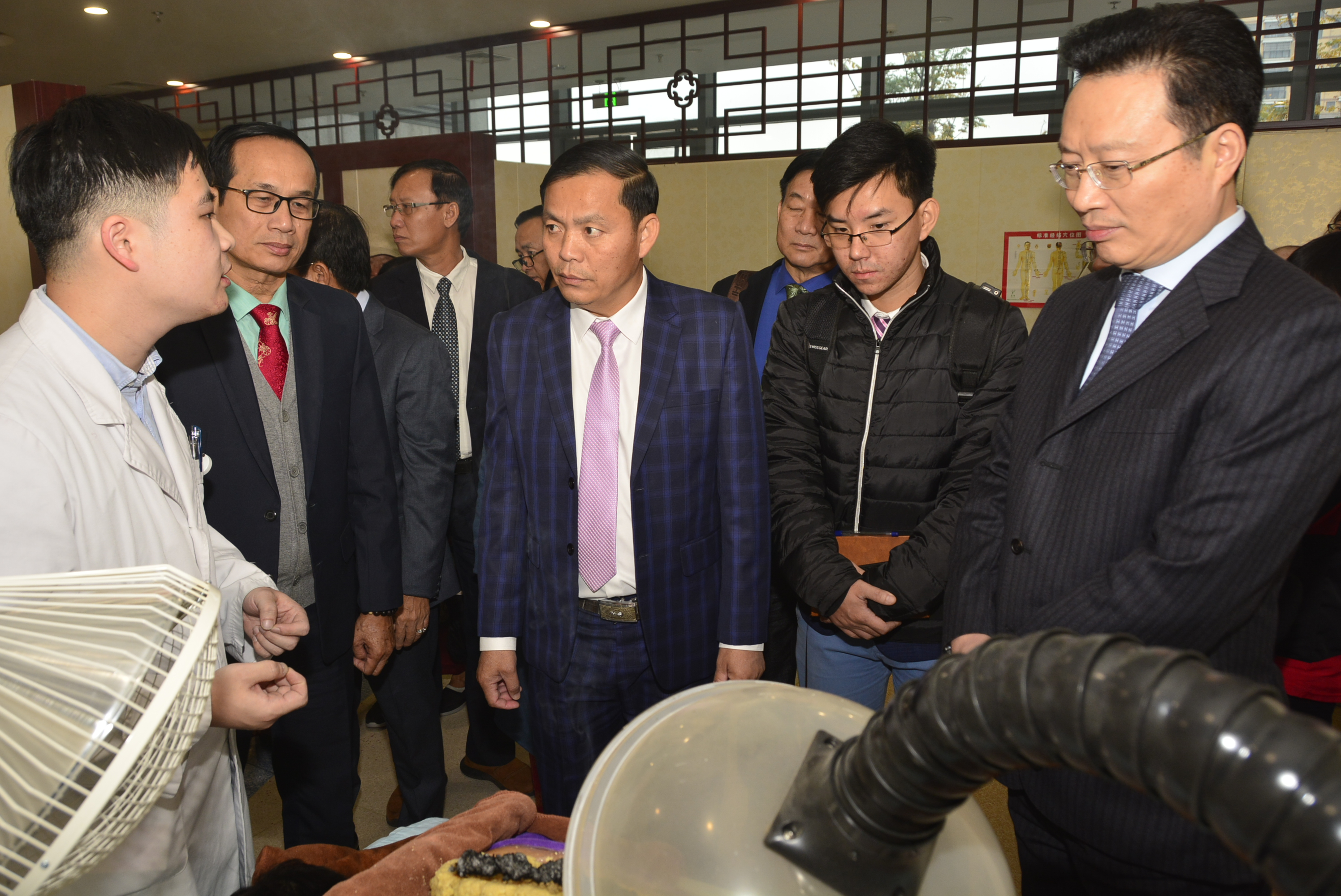 在中醫(yī)經(jīng)典病房和傳統(tǒng)療法中心,柬埔寨嘉賓代表團(tuán)感受了濃濃的中醫(yī)藥文化氛圍,大家觀摩了天督灸、針灸、推拿等傳統(tǒng)特色療法,大贊中醫(yī)“Very good”。