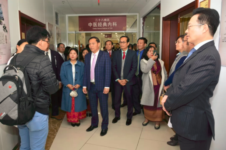 暹粒省副省長(zhǎng)本布拉格一行在泰州市人民政府王學(xué)鋒,泰州市中醫(yī)院黨委書記、院長(zhǎng)王華的陪同下到我院中醫(yī)藥文化園、中醫(yī)經(jīng)典科、中醫(yī)傳統(tǒng)療法中心、檢驗(yàn)病理中心、藥房等地進(jìn)行了實(shí)地參觀。