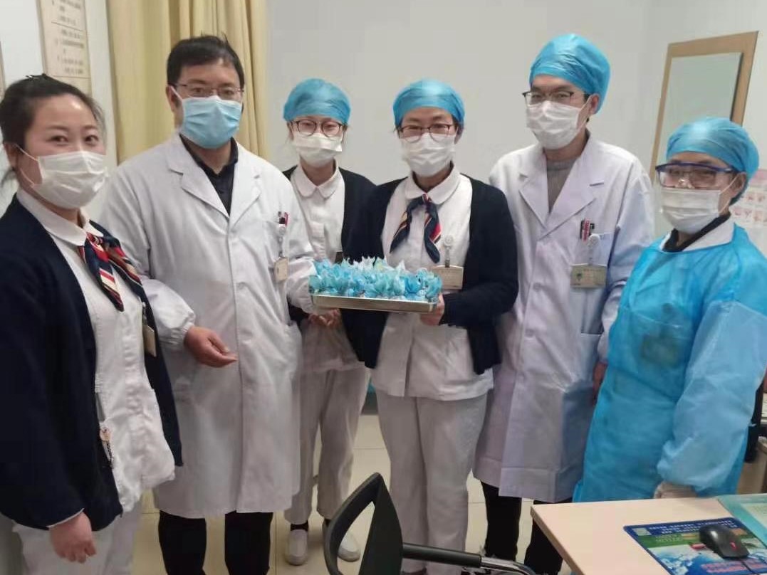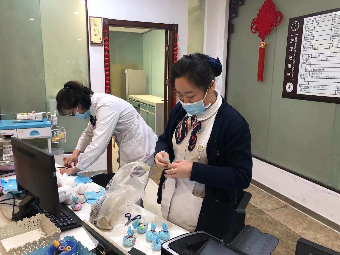 時(shí)間緊迫,香囊雖簡(jiǎn),心意滿滿,袋袋皆情。制作完工后,中醫(yī)經(jīng)典科陳順中主任和護(hù)士長(zhǎng)錢麗麗一同首先將第一批成品先送到了我院援鄂醫(yī)療預(yù)備隊(duì)員們的手中,“你們此次前去,多加小心,請(qǐng)收下我們的心意,祝一路順利,愿此香囊陪伴你們凱旋而歸!”勇士們手拿香囊,信心滿滿,精神更加飽滿。