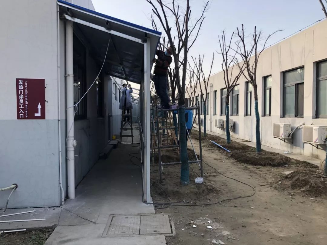 為保證患者就診安全,后勤處迅速成立施工隊(duì)伍。經(jīng)現(xiàn)場查勘、細(xì)化施工方案、明確任務(wù)分工、前期材料采購等一系列準(zhǔn)備工作后,在保證質(zhì)量和施工安全的前提下,爭分奪秒與時間賽跑,在一夜的時間內(nèi)完成了發(fā)熱門診、隔離房間的改造任務(wù)。