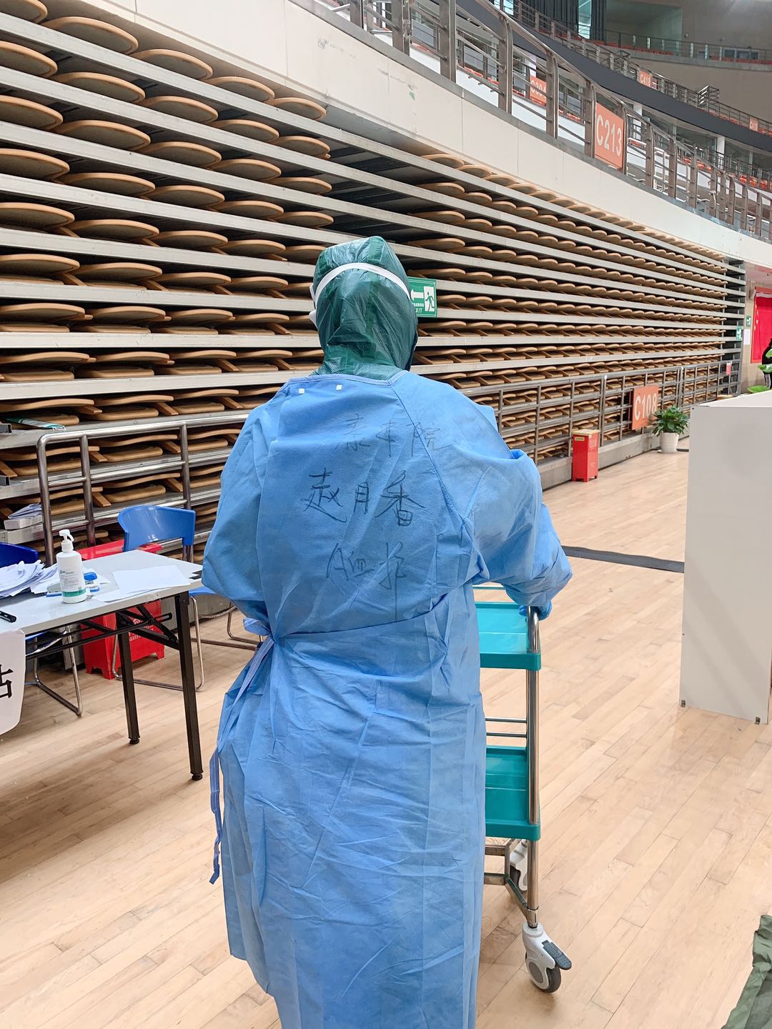這幾天,趙月香一直戰(zhàn)斗在武漢體育中心方艙醫(yī)院的A區(qū),主要是負責搶救患者的護理,一到崗她就迅速進入“戰(zhàn)斗”狀態(tài),測量體溫、脈搏、血飽等,掌握病人的基本信息,填寫護理表單,發(fā)放藥品,及時執(zhí)行醫(yī)囑。面對特殊時期的特殊病人,尤其需要護理人員去關注他們的心理狀態(tài),緩解他們的痛苦。每天她基本上都得工作10小時以上,身上套上防護裝備,墊上尿不濕,忙起來一天都喝不著水,也顧不到上廁所!