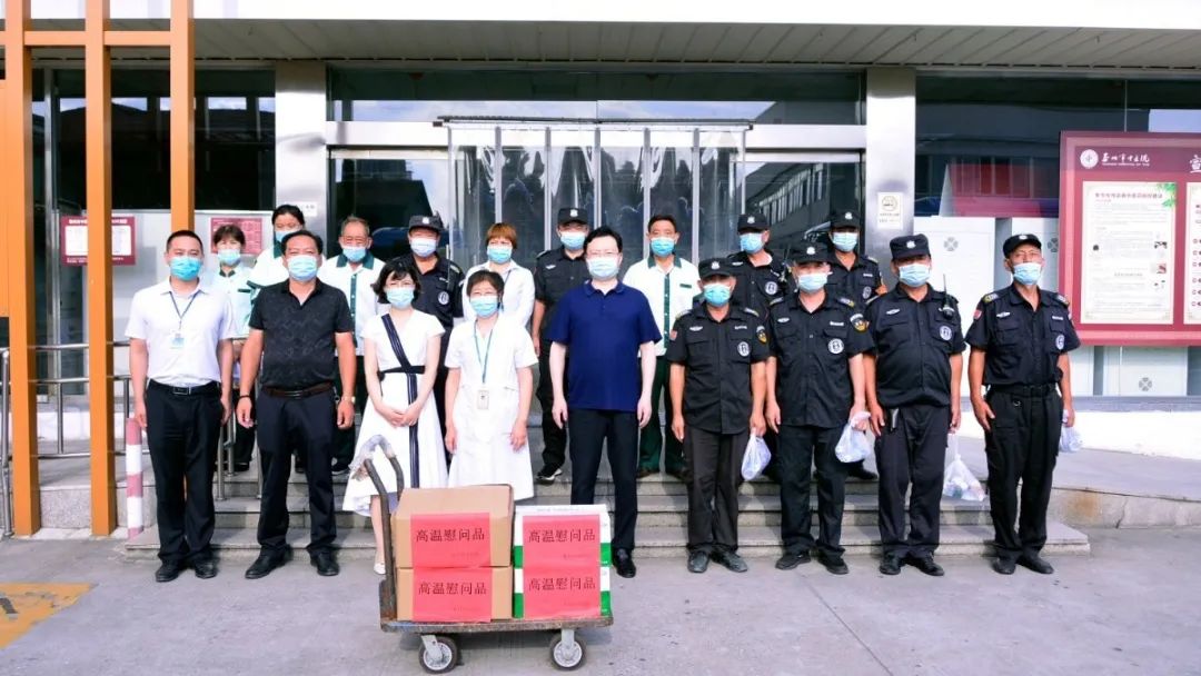 8月6日下午,我院黨委書記、院長王華帶領院領導班子成員攜相關職能科室前往東、西院戶外保安、醫(yī)院二期工程項目施工現(xiàn)場等崗位,對奮戰(zhàn)在高溫一線的人員進行慰問,并送上清涼消暑的慰問品。