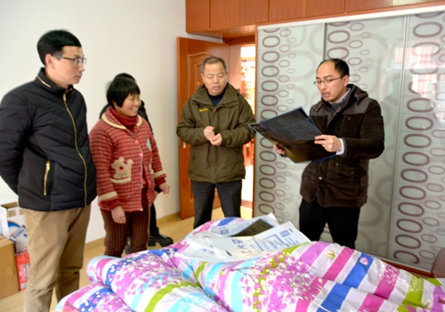為充分體現(xiàn)黨和政府對基層群眾的關心關愛, 按照全市大走訪大落實“集中服務周”活動的通知精神, 2017年1月20日周五上午,泰州市中醫(yī)院黨委書記王華、黨委副書記孫曉軍等同志在金東社區(qū)街道辦負責人的陪同下,對10個貧困戶家庭進行走訪慰問。