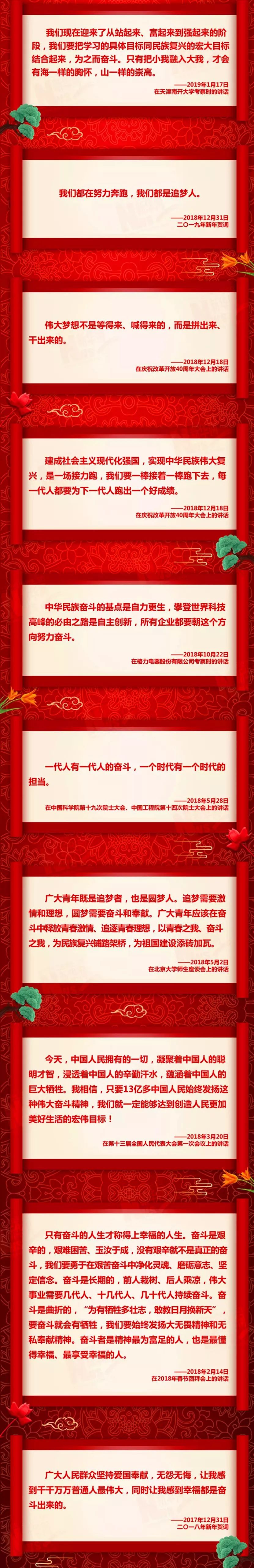 2019年新春上班第一天,隨著開工“集結(jié)號”的吹響,開啟了泰州市中醫(yī)院新一年的征程。剛剛過去的一年,我們過得很充實,走得很堅定。一切成績都是全院干部職工擼起袖子干出來的。新的一年,新的起點,拼搏奮進(jìn)正當(dāng)時,重整行裝再出發(fā)。我們摘錄了習(xí)近平總書記談奮斗的十段重要講話,為大家加油鼓勁。