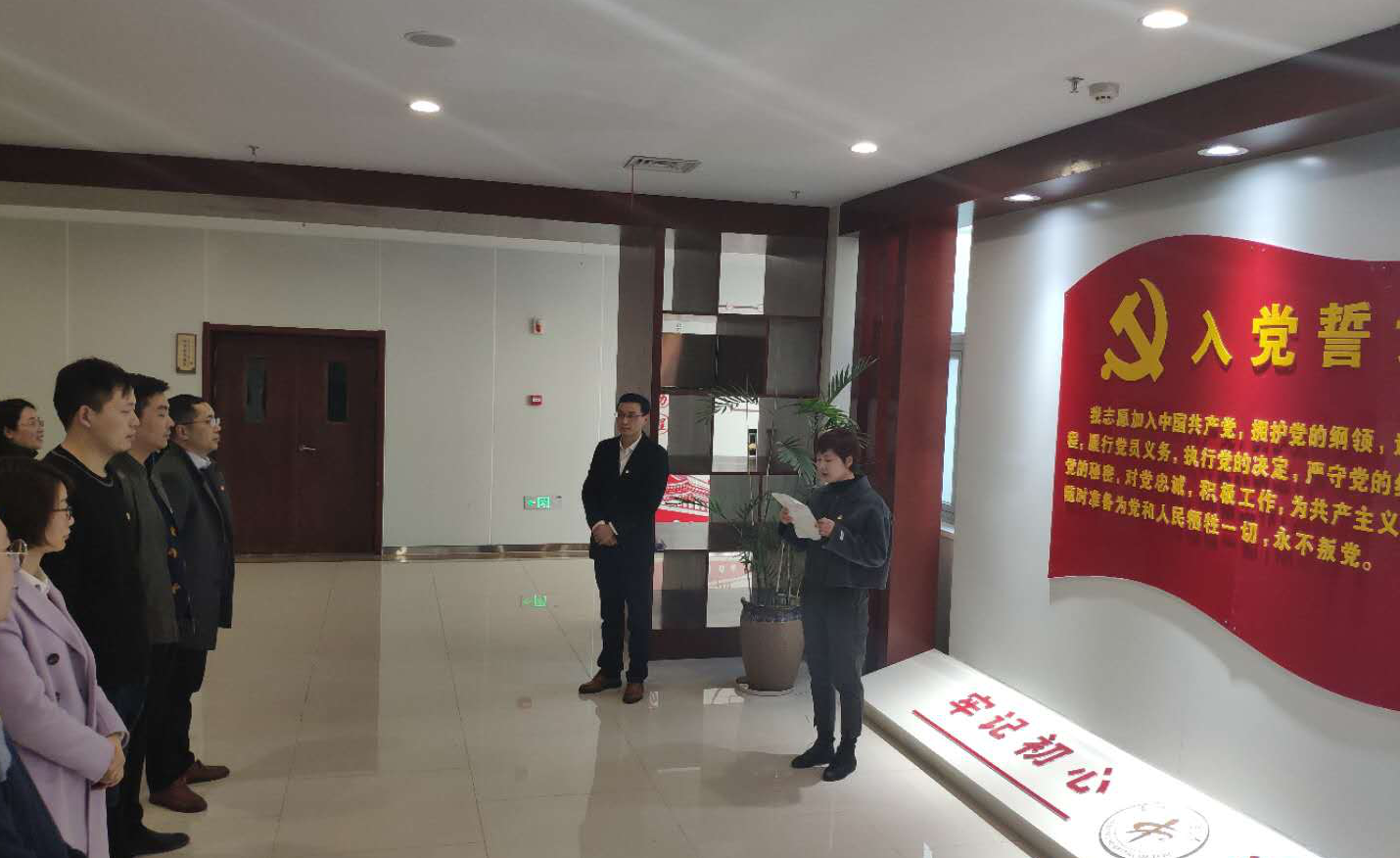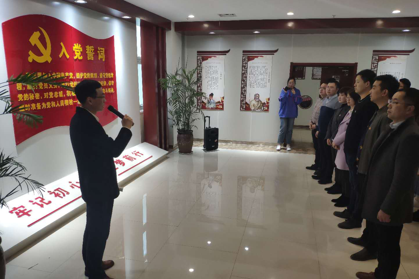 道德講堂結(jié)束后,在黨員組織生活館的宣誓大廳進(jìn)行了預(yù)備黨員的入黨宣誓儀式。醫(yī)院黨委副書記孫曉軍、部分黨員代表、入黨積極分子及新遞交入黨申請(qǐng)書的人員參與了此次儀式。