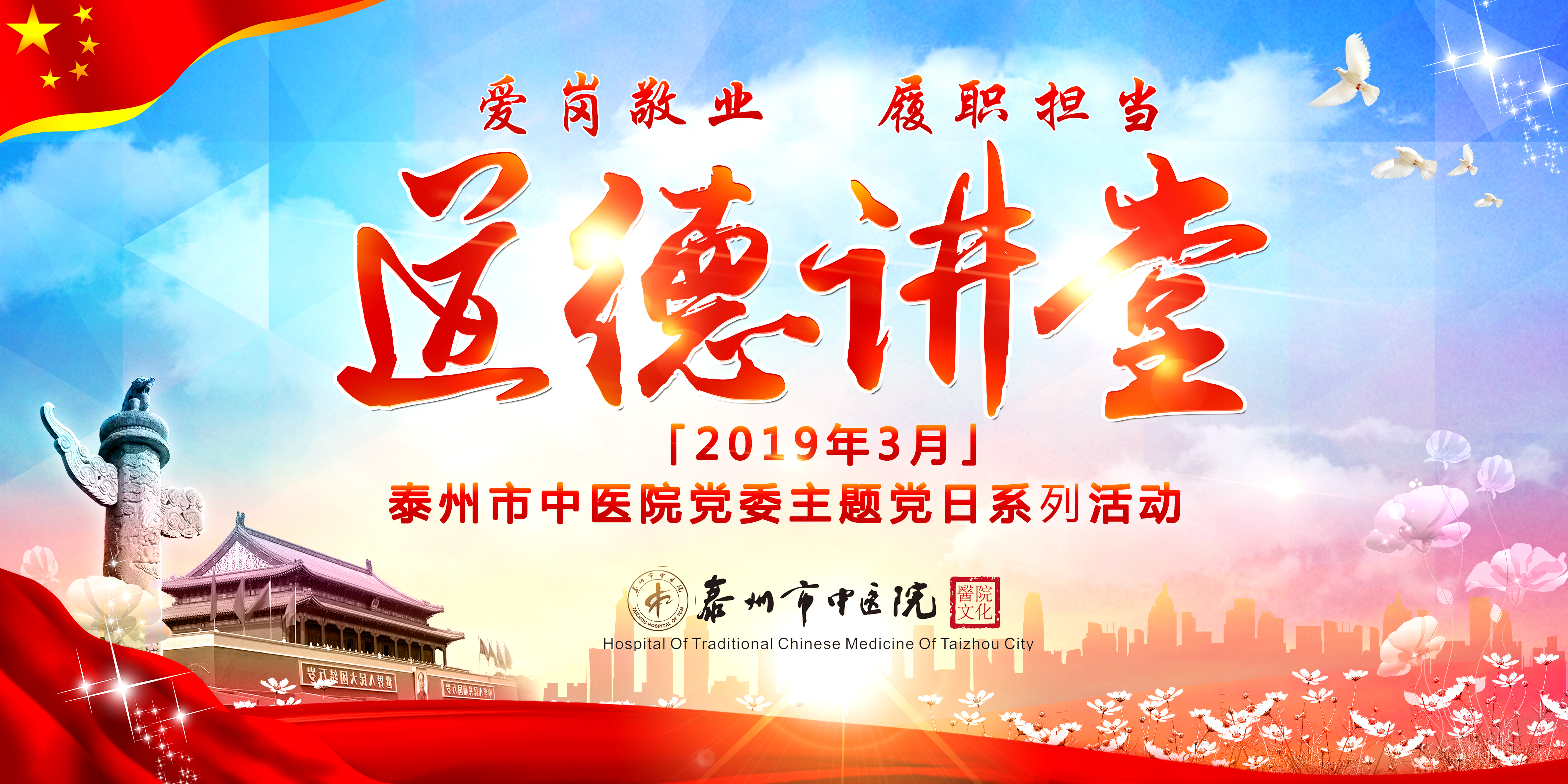為深入貫徹實(shí)施《公民道德建設(shè)實(shí)施綱要》,扎實(shí)推進(jìn)社會(huì)主義核心價(jià)值體系建設(shè),引導(dǎo)廣大醫(yī)護(hù)人員投身道德實(shí)踐活動(dòng),不斷提升醫(yī)護(hù)人員的思想道德修養(yǎng),3月26日下午,我院在泰州市中醫(yī)院四樓舉辦了2019年中共泰州市中醫(yī)院黨委主題黨日暨“道德講堂”活動(dòng)。本期活動(dòng)的主題為“愛崗敬業(yè) 履職擔(dān)當(dāng)”。醫(yī)院院領(lǐng)導(dǎo)、全體黨員、團(tuán)員青年、入黨積極分子及遞交入黨申請(qǐng)書的人員共計(jì)200余人參加了此次活動(dòng)。
