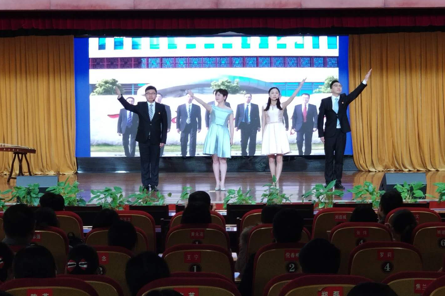 在團(tuán)委5位同志朗誦的作品《杏林暖醫(yī)、岐黃惠民》中,通過生動(dòng)的比喻,將醫(yī)院各個(gè)崗位上的先進(jìn)形象進(jìn)行了展示,用“天使媽媽”、“永不生銹的螺絲釘”、“巾幗英雄”等映襯出情系患者生命健康的醫(yī)務(wù)人員圣潔之光!