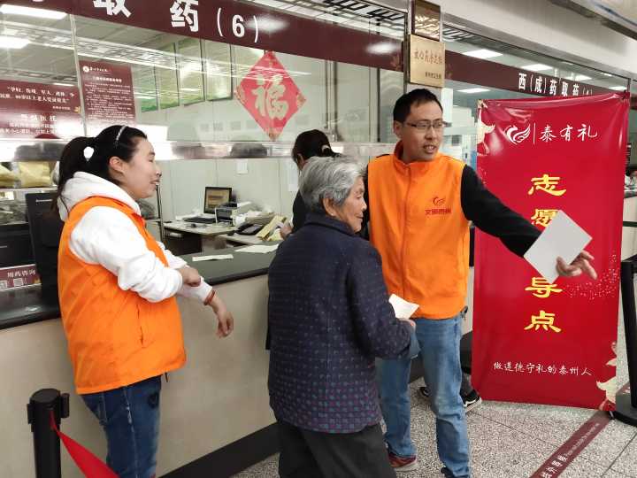 4月6日,泰州市中醫(yī)院在門診服務(wù)大廳開展“文明禮讓 有序排隊(duì)”泰有禮主題活動。由黨辦牽頭,門診部、藥學(xué)辦等部門參與,活動采用“排隊(duì)送禮”的獎勵手段,根據(jù)患者所需發(fā)放小禮品100余份,醫(yī)院宣傳畫冊100余份,志愿者、診導(dǎo)醫(yī)臺護(hù)士、部分黨員參加了活動。