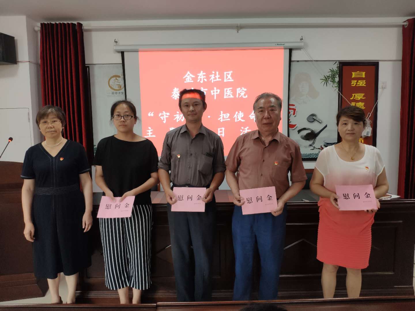 為紀(jì)念中國(guó)共產(chǎn)黨成立98周年,加強(qiáng)對(duì)泰州市中醫(yī)院共產(chǎn)黨員的身份教育、使命教育、初心教育,體現(xiàn)黨組織對(duì)各類社會(huì)群體的關(guān)愛(ài)。7月1日,泰州市中醫(yī)院組織部分黨員干部群眾來(lái)到京泰路街道金東社區(qū)、雙墩社區(qū),圍繞“守初心.擔(dān)使命”主題開(kāi)展大走訪大落實(shí)新風(fēng)行動(dòng)。