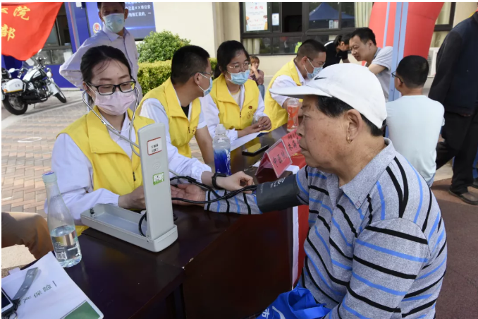 來自泰州市中醫(yī)院軟傷正骨科楊洲、神經(jīng)內(nèi)科朱海榮、婦產(chǎn)科房彩平等組成的黨員志愿者服務(wù)隊現(xiàn)場為居民提供免費診療服務(wù)、健康咨詢服務(wù)以及免費測量血壓,他們還為現(xiàn)場的老百姓推廣手機預(yù)約掛號,滿足他們對健康的需求。