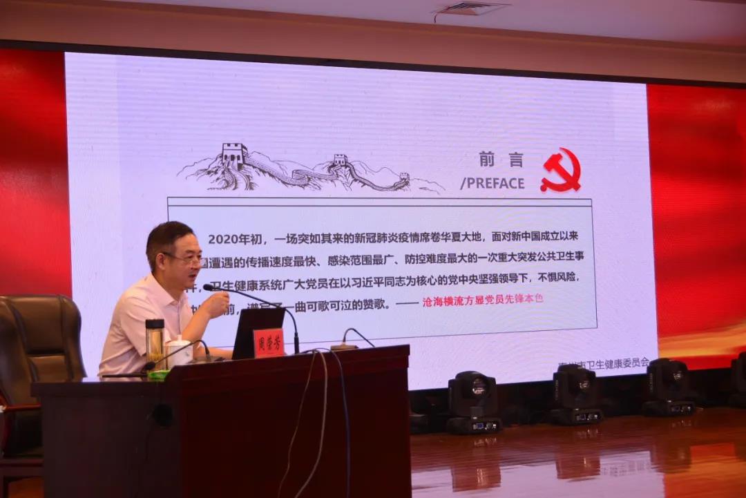 泰州市衛(wèi)健委四級調(diào)研員周榮芳講《滄海橫流方顯黨員先鋒本色》黨課,闡述了在關(guān)鍵時刻沖得上去、危難關(guān)頭豁得出來的黨員本色。