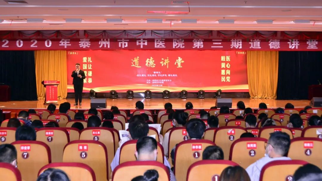 為積極響我市“泰有禮”全民主題實踐活動,進一步傳承中華美德,凝聚道德力量,發(fā)揚講“禮”重“儀”是中華民族世代相傳的優(yōu)良傳統(tǒng)。10月12日下午,泰州市中醫(yī)院舉辦2020年第三期道德講堂活動,此次活動主題為“泰有禮”。醫(yī)院院領(lǐng)導(dǎo)、黨員、團員青年、入黨積極分子及新入職員工共計200余人參加了此次活動。