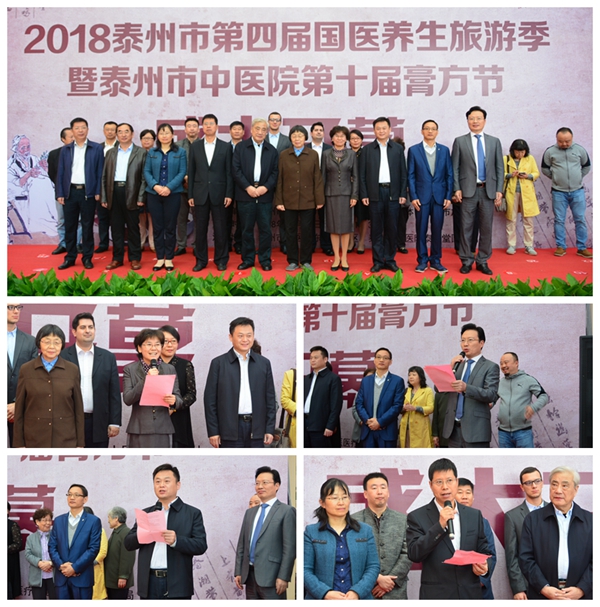 10月20日上午,泰州市第四屆國醫(yī)養(yǎng)生旅游季暨泰州市中醫(yī)院第十屆膏方節(jié)開幕式正式啟動!此次由全國名老中醫(yī)藥專家顏乾麟教授,上海中醫(yī)藥大學(xué)附屬岳陽醫(yī)院張玉萍教授,泰州市人大副主任臧大存,泰州市政協(xié)副主席黃立紅,江蘇省中醫(yī)藥局中醫(yī)綜合處處長陳燕,泰州市旅游局局長申強,泰州市衛(wèi)計委副調(diào)研員王彬,中華人民共和國駐柬埔寨王國大使館駐暹粒領(lǐng)事辦公室領(lǐng)事夏永宏,泰州市總工會副主席朱秀宏,泰州市中醫(yī)院黨委書記、院長王華,英國劍橋生物創(chuàng)業(yè)孵化中心代表、英國劍橋醫(yī)院(NHS英國國民健康署)國際事務(wù)發(fā)展部主任助理Danail Iskrov(丹尼.伊斯科洛夫),保加利亞-中國工業(yè)商會執(zhí)行董事Krassen Mitev(克拉申.米特夫),溱湖旅游度假區(qū)主任王榮明,泰州農(nóng)商銀行副行長姜躍華,上海市第十人民醫(yī)院中醫(yī)內(nèi)科副主任韓天雄,江蘇省名中醫(yī)馬永楨教授,江蘇省名中醫(yī)鄂惠教授,國醫(yī)大師夏桂成教授學(xué)術(shù)繼承人趙可寧教授,南京中醫(yī)藥大學(xué)教授、膏方專家劉慶幫,江蘇省中醫(yī)院兒科專家卞同琦教授,泰州市衛(wèi)計委中醫(yī)處處長朱云、中國國旅(江蘇)泰州分公司副總經(jīng)理陳躍,泰州市中醫(yī)院領(lǐng)導(dǎo)班子成員,泰州市中醫(yī)醫(yī)聯(lián)體成員單位代表,泰州市中醫(yī)院職能及醫(yī)務(wù)人員代表,養(yǎng)生旅游專列游客等參加了開幕儀式。