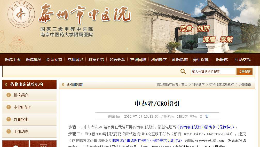 泰州市中醫(yī)院官方網(wǎng)站的藥物臨床試驗(yàn)機(jī)構(gòu)、倫理專欄