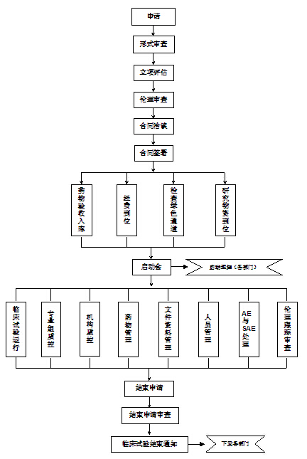 一、藥物臨床試驗運(yùn)行流程圖: