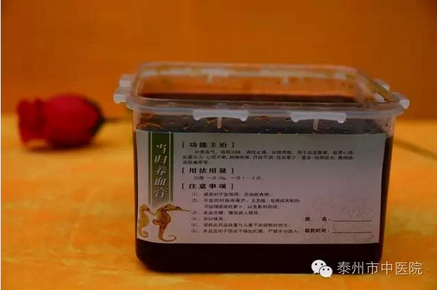 當(dāng)歸養(yǎng)血膏是泰州市中醫(yī)院特色成膏,功能主治:補(bǔ)氣養(yǎng)血、滋陰潤(rùn)燥、調(diào)經(jīng)止痛、祛斑養(yǎng)顏;用于血虛萎黃,眩暈心悸,肌萎無(wú)力,心煩不眠,肺燥咳嗽,月經(jīng)不調(diào),經(jīng)血量少/量多,經(jīng)期延長(zhǎng),黃褐斑,皮膚瘙癢等。