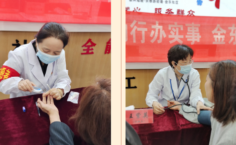 一坐下來,第二黨支部書記王紫英和婦幼健康科沈曉紅主任就忙著為患者測血壓、血糖,并耐心解答居民的健康問題。