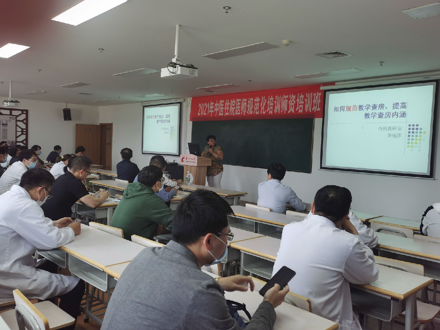 5月21日下午,師資培訓班在全科樓205教室舉辦,各科室教學主任、教學秘書以及協(xié)同單位、基層合作單位的臨床帶教老師100余人參加了此次培訓班,教育處張玉副處長主持會議。