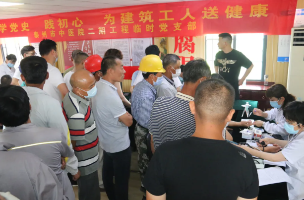 為積極響應(yīng)在黨史學(xué)習(xí)教育中開(kāi)展“我為群眾辦實(shí)事”實(shí)踐活動(dòng)的號(hào)召,保障一線建筑工人身體健康,為工程安全生產(chǎn)、高效推進(jìn)打下堅(jiān)實(shí)基礎(chǔ)。6月29日上午,泰州市中醫(yī)院第二黨支部聯(lián)合泰州市城投建設(shè)以及泰州市審計(jì)局黨支部走進(jìn)二期工程一線工地為建筑工人開(kāi)展“學(xué)黨史 踐初心 送健康”義診活動(dòng)。