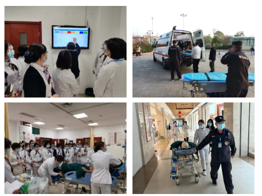 11月18日下午,全院急救演練緊張進行。此次急救演練模擬一男性在家中突發(fā)胸痛,120調(diào)度室在接到緊急求救電話后,立即啟動胸痛中心應急預案,并派出急救車輛以最快的速度趕往現(xiàn)場并迅速展開救治,初步救治后接入醫(yī)院急診科進一步治療,確診為急性ST段抬高型心肌梗死后,立即予“急救一包藥”口服,在轉(zhuǎn)運途中突發(fā)心跳驟停,就近病區(qū)實施組織搶救成功后,送導管室行介入治療。