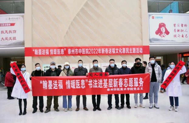 為深入學習貫徹黨的十九屆六中全會和省十四次黨代會、市六次黨代會精神,全面落實中央文明辦、省文明辦關于在2022年元旦春節(jié)期間廣泛開展志愿服務關愛行動的部署要求,聚焦市第六次黨代會“致力民生”主題,1月14日下午,我院聯合泰州學院美術學院黨總支舉行“翰墨送福 情暖醫(yī)患”—新春送福志愿服務活動,更好發(fā)揮文明實踐在傳播黨的聲音,豐富群眾節(jié)日生活,向社會傳遞溫暖中的重要作用。
