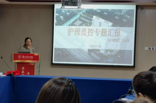 為進(jìn)一步樹立護(hù)理隊(duì)伍質(zhì)量管理意識,提高護(hù)士長科學(xué)管理水平,提升護(hù)理人員以問題為導(dǎo)向、運(yùn)用管理工具解決問題的能力,泰州市中醫(yī)院護(hù)理部于7月8日下午舉行了2022年度上半年護(hù)理質(zhì)量改善專題匯報(bào)會,全院護(hù)士長參加會議。