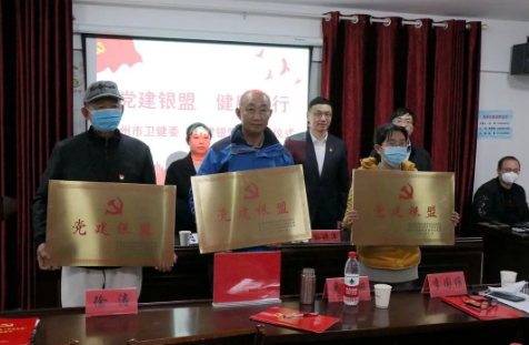衛(wèi)健委機(jī)關(guān)黨委副書記姚嵐、市中醫(yī)院黨委副書記孫曉軍、市委老干部局服務(wù)保障處副處長王進(jìn)愛向三家單位進(jìn)行授牌