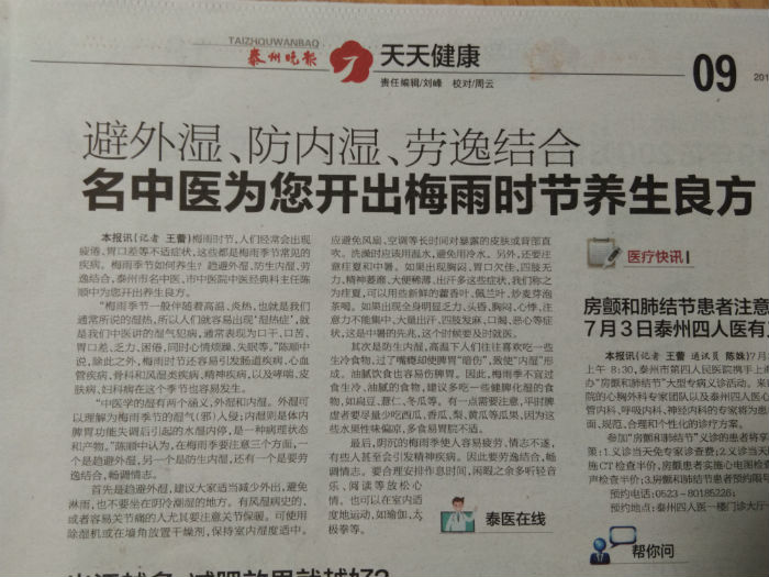 來源:泰州市中醫(yī)院 作者:編輯 時間:2018-06-29 11:23:00