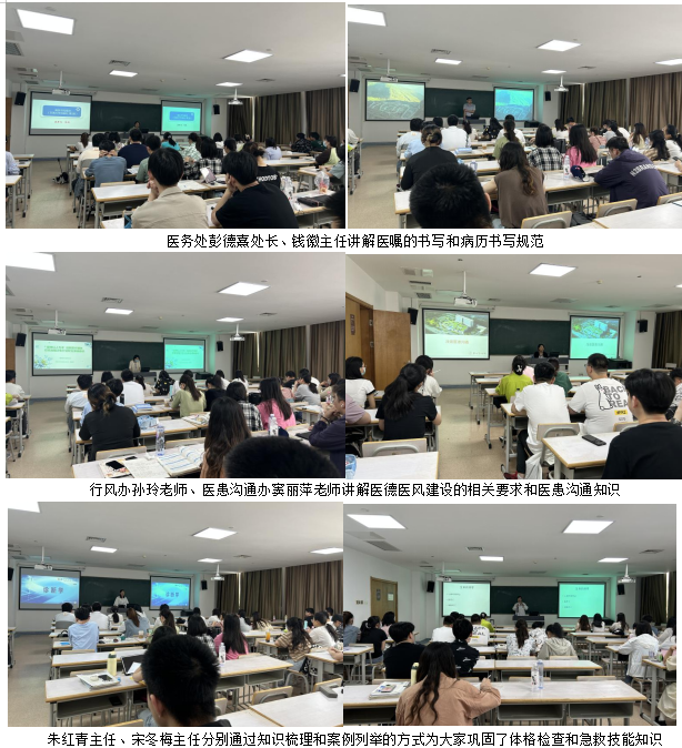 本次培訓內(nèi)容豐富,形式多樣,首先是醫(yī)院介紹、宿舍管理條例、消防安全知識、院感防控知識等,對同學們的工作與生活作出規(guī)范性要求;其次是醫(yī)囑和電子處方的書寫使用規(guī)范,同時進行了體格檢查、急救技能培訓,強調(diào)了醫(yī)德醫(yī)風建設(shè),為同學們進入臨床積累扎實的知識貯備;最后進行了特色性的中醫(yī)傳承講座,增強了同學們對中醫(yī)藥的文化自信。本次崗前培訓于6月15日進行了結(jié)業(yè)考試,圓滿完成培訓任務(wù)。