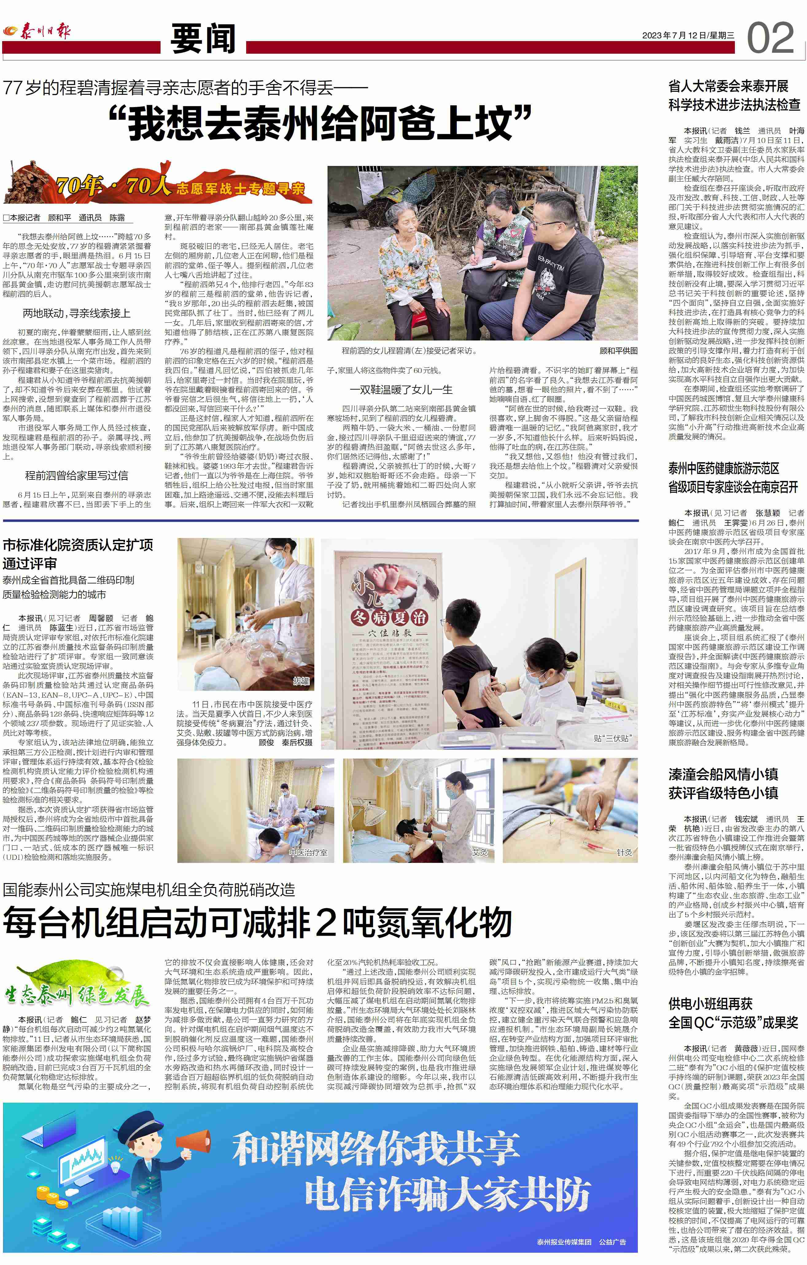 【泰州日?qǐng)?bào)7月12日】市民在市中醫(yī)院接受中醫(yī)療法