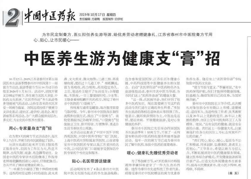 來源:泰州市中醫(yī)院 作者:編輯 時間:2019-10-17 15:16:00