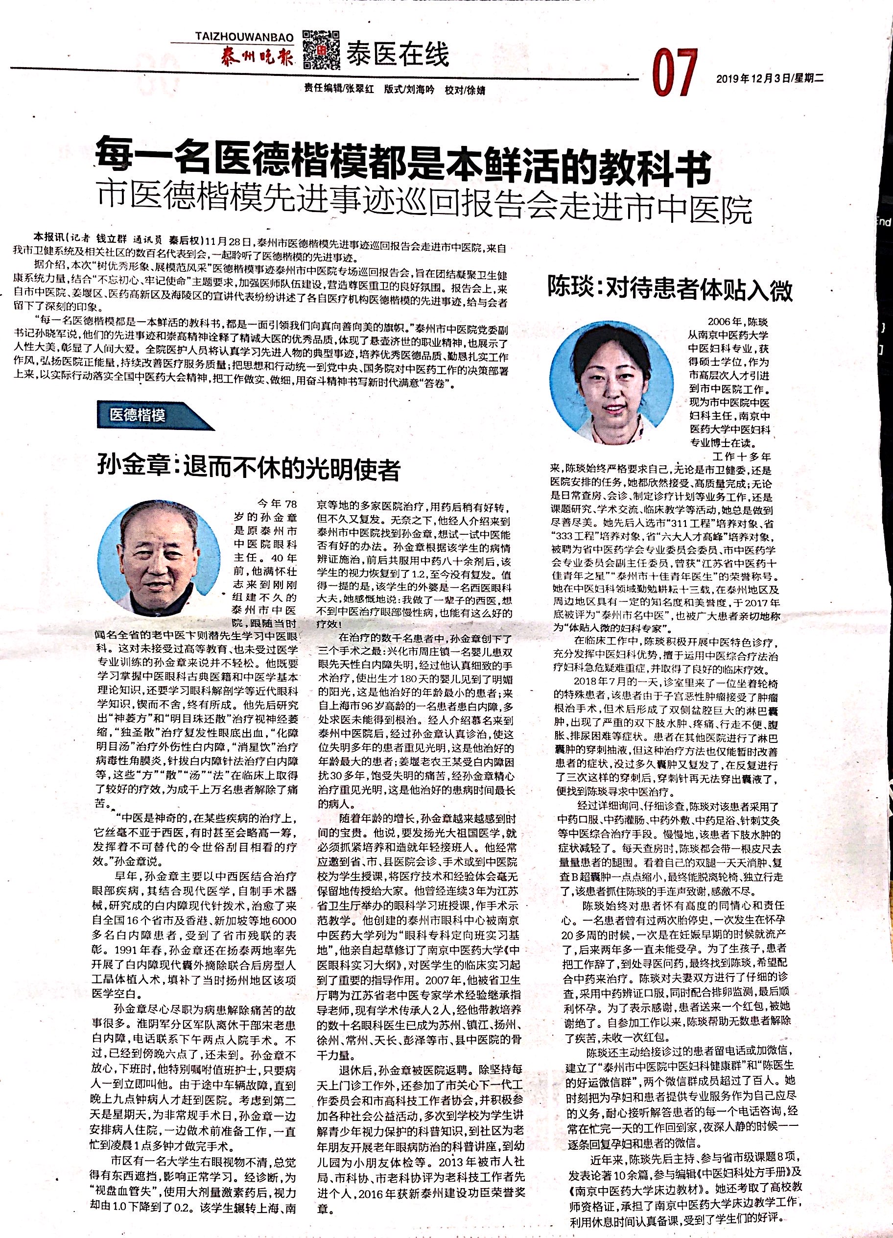來源:泰州市中醫(yī)院 作者:編輯 時間:2019-12-03 16:11:00