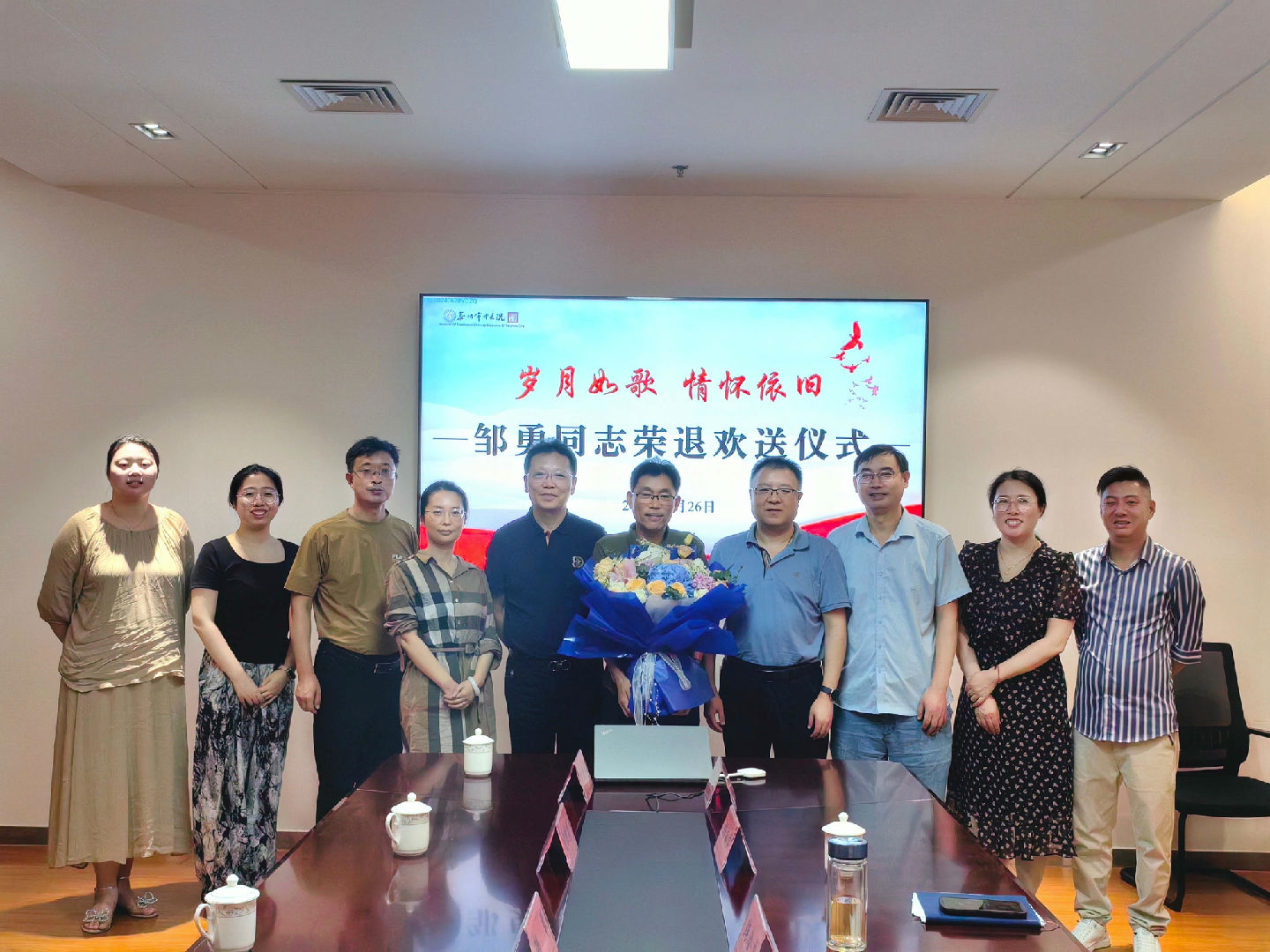 鄒勇同志回憶了從業(yè)以來的點(diǎn)點(diǎn)滴滴,分享了自己的工作經(jīng)驗(yàn)和切身感悟,抒發(fā)了對醫(yī)院的深厚情感,并對醫(yī)院的培養(yǎng)和關(guān)懷表示誠摯感謝。院黨委書記韓金虎代表院黨委對鄒勇同志多年來的貢獻(xiàn)與辛勞付出表示誠摯的感謝,對他們無私奉獻(xiàn)的精神和愛崗敬業(yè)的態(tài)度表示贊揚(yáng)和敬意。他祝愿鄒勇同志在今后的生活中繼續(xù)保持良好的生活習(xí)慣和積極樂觀的心態(tài),更加健康、更加幸福、更加精彩!