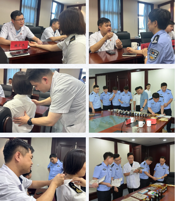 為深化警醫(yī)合作,做實(shí)愛警、暖警服務(wù),7月30日下午,結(jié)合江蘇省中醫(yī)藥文化服務(wù)月暨泰州市健康促進(jìn)“十千百萬工程”行動推進(jìn),泰州市中醫(yī)院中醫(yī)專家團(tuán)隊(duì)走進(jìn)泰州海關(guān)緝私分局,開展以“警醫(yī)相連·沐光而行”為主題的黨建聯(lián)建活動。通過黨的二十屆三中全會精神學(xué)習(xí)、健康講座、中醫(yī)義診等特色服務(wù),共同擦亮黨建品牌,提升緝私民警輔警繁忙工作之余的健康指數(shù)。