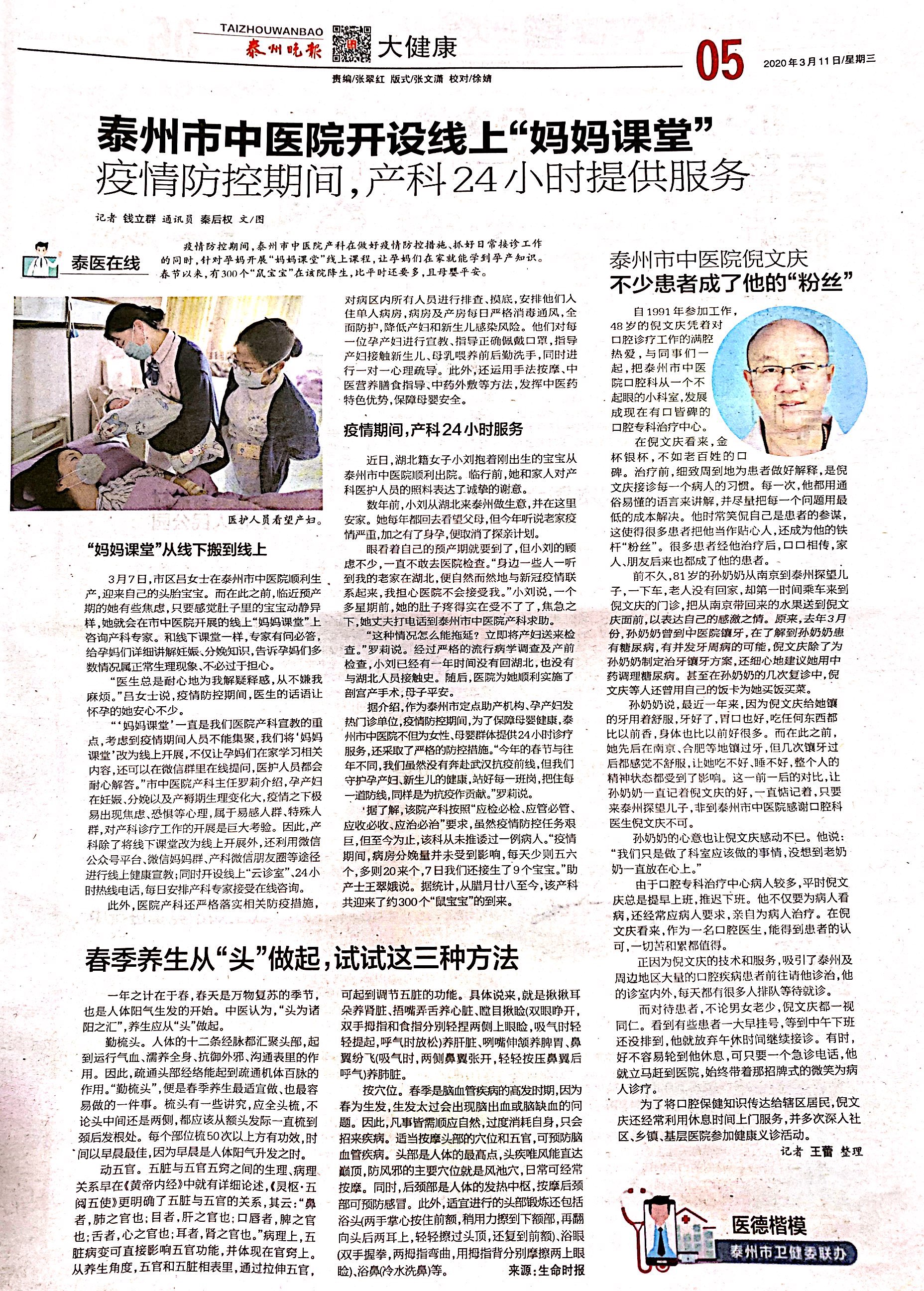 來源:泰州市中醫(yī)院 作者:編輯 時間:2020-03-11 11:05:08