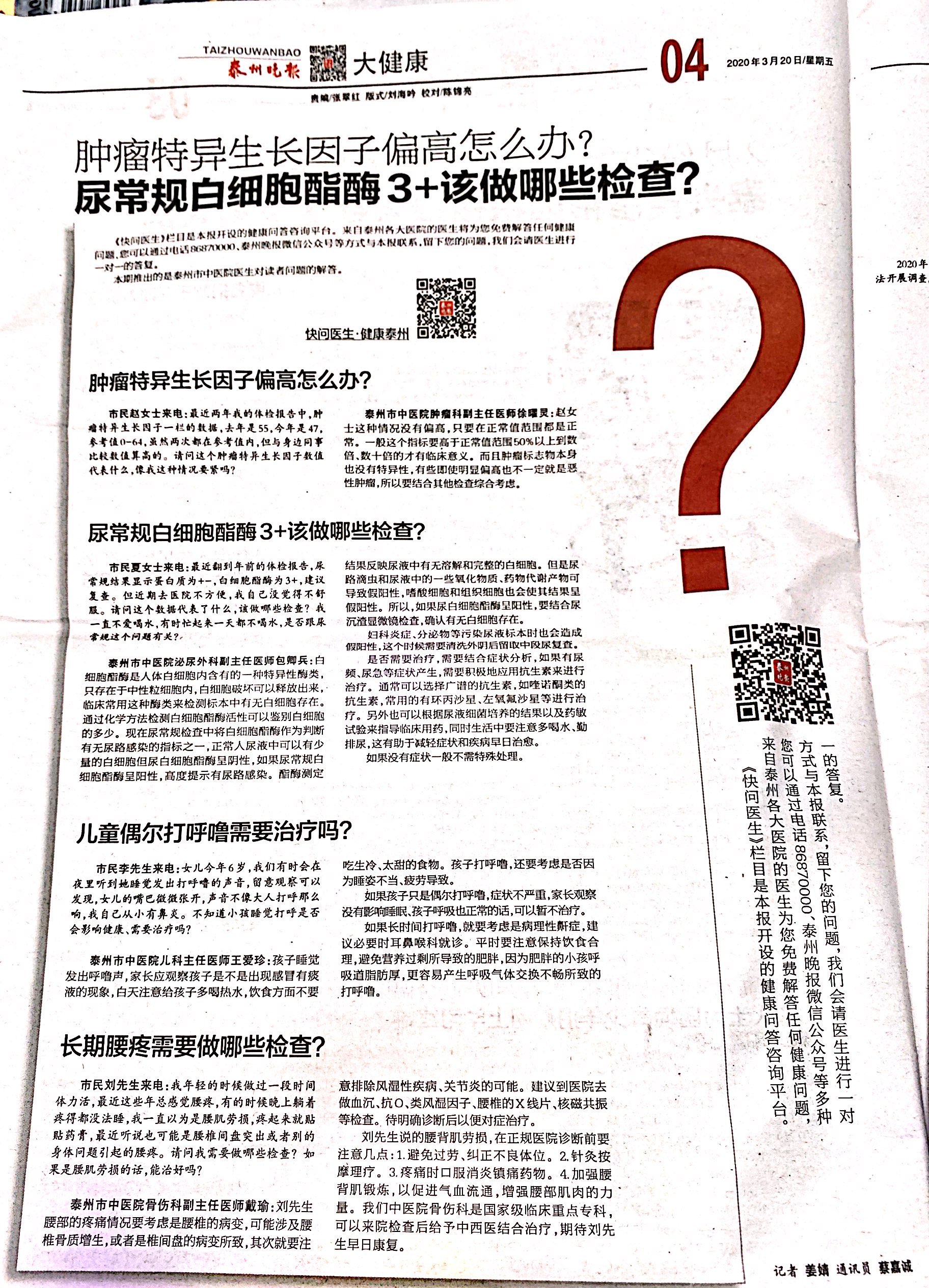 來源:泰州市中醫(yī)院 作者:編輯 時(shí)間:2020-03-20 08:38:00