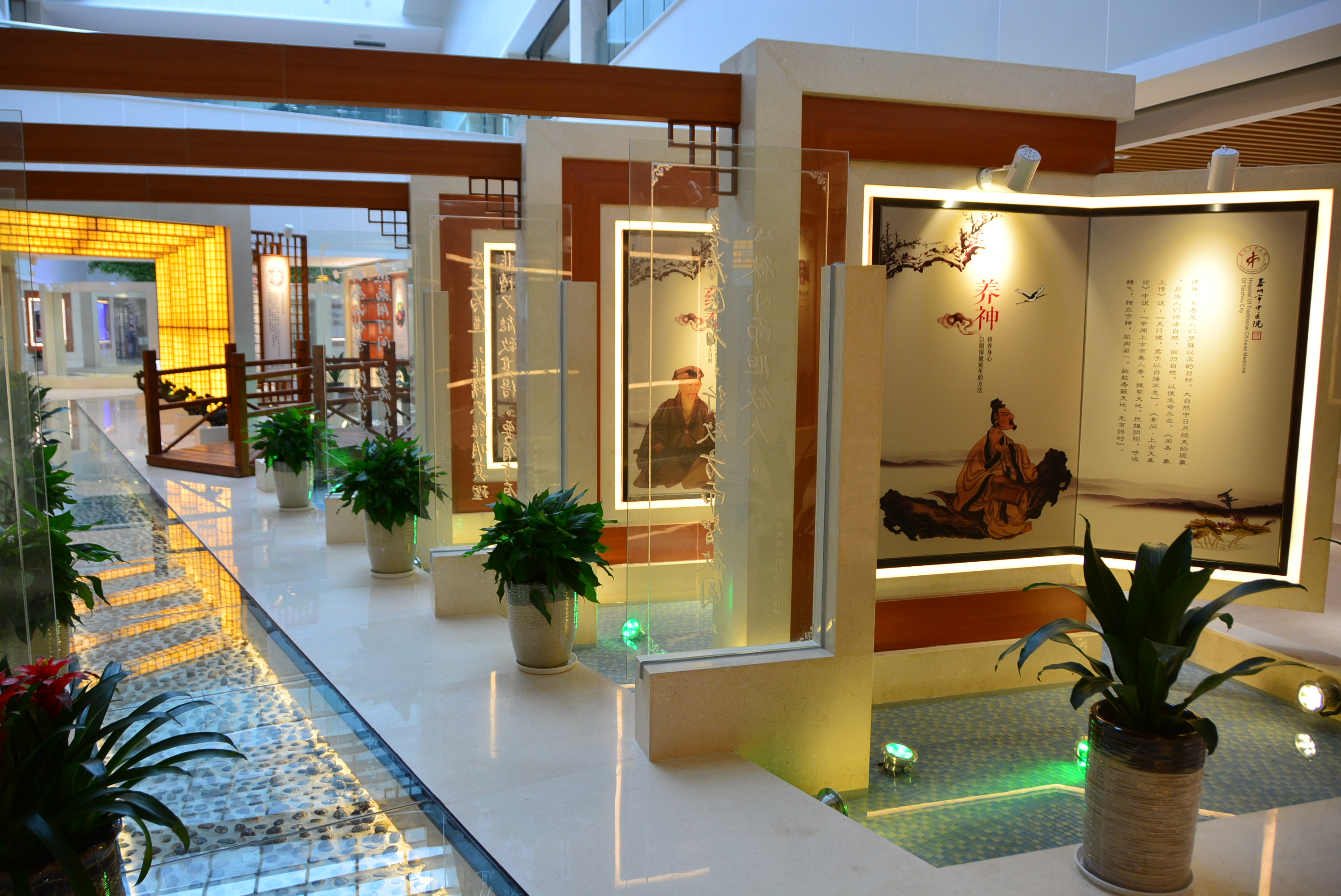 中醫(yī)藥傳統(tǒng)文化展示區(qū)集中展示了中醫(yī)傳統(tǒng)診療技藝,如望聞問(wèn)切、針灸砭藥,同時(shí)設(shè)有中藥材標(biāo)本、中藥飲片、中醫(yī)藥傳統(tǒng)器皿(膏方罐、葫蘆藥瓶、酒瓶、香薰盒等)、中醫(yī)藥古書籍展示區(qū),集中展示標(biāo)本近上百種,還有許多院內(nèi)制劑和養(yǎng)生保健產(chǎn)品,通過(guò)實(shí)物和文字介紹,可以看到中藥材的藥用部位特性、了解中藥材如何真?zhèn)伪鎰e。中醫(yī)藥養(yǎng)生展示區(qū)集中展示四季養(yǎng)生、八段錦、五禽戲與“六養(yǎng)”即養(yǎng)志、養(yǎng)德、養(yǎng)眼、藥養(yǎng)、養(yǎng)行、養(yǎng)神。中醫(yī)名人典故展示區(qū)集中展示了歷代中醫(yī)藥名醫(yī)、泰州八大名醫(yī),并以浮雕的形式展示了神農(nóng)嘗百草、時(shí)珍問(wèn)藥、扁鵲診脈、雷公炮灸、思邈傳道、仲景著書、懸壺濟(jì)世、橘井泉香等中醫(yī)藥典故。