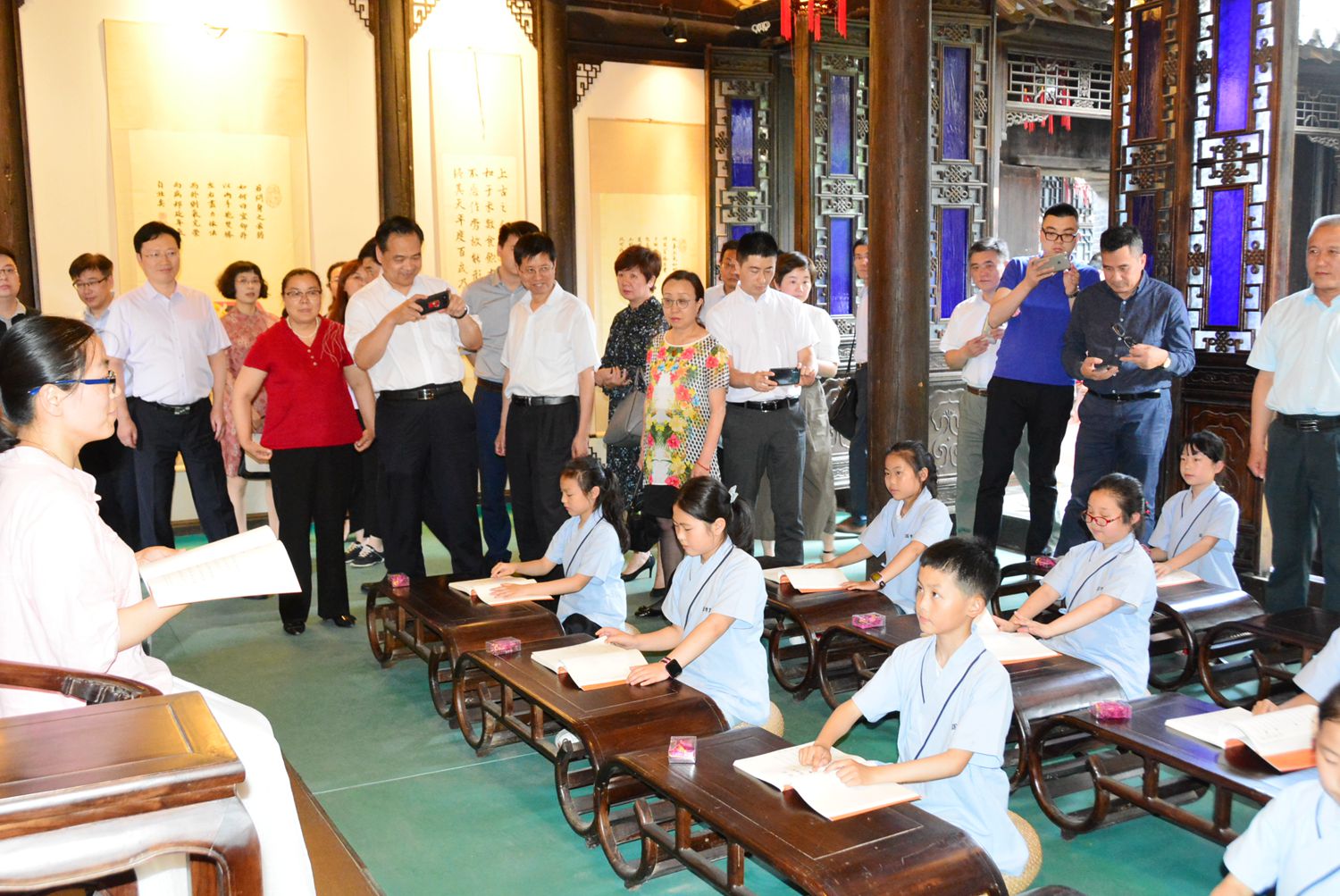 在泰和堂內(nèi)的稻河中醫(yī)大講堂,一群正在誦讀國學(xué)經(jīng)典的小朋友,吸引了代表團(tuán)駐足觀看