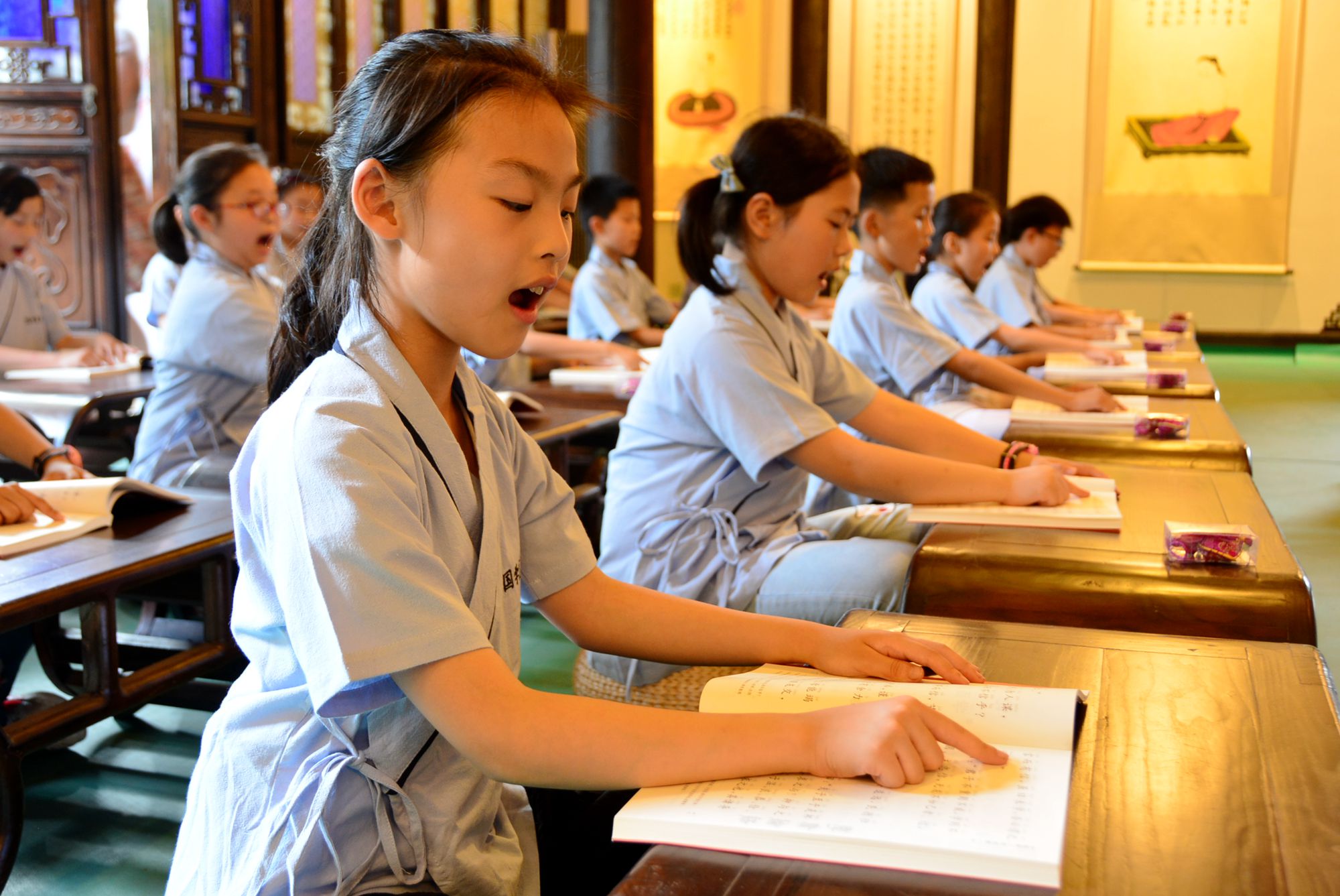 誦讀國學(xué)經(jīng)典,小學(xué)生們沉浸在誦讀的樂趣之中