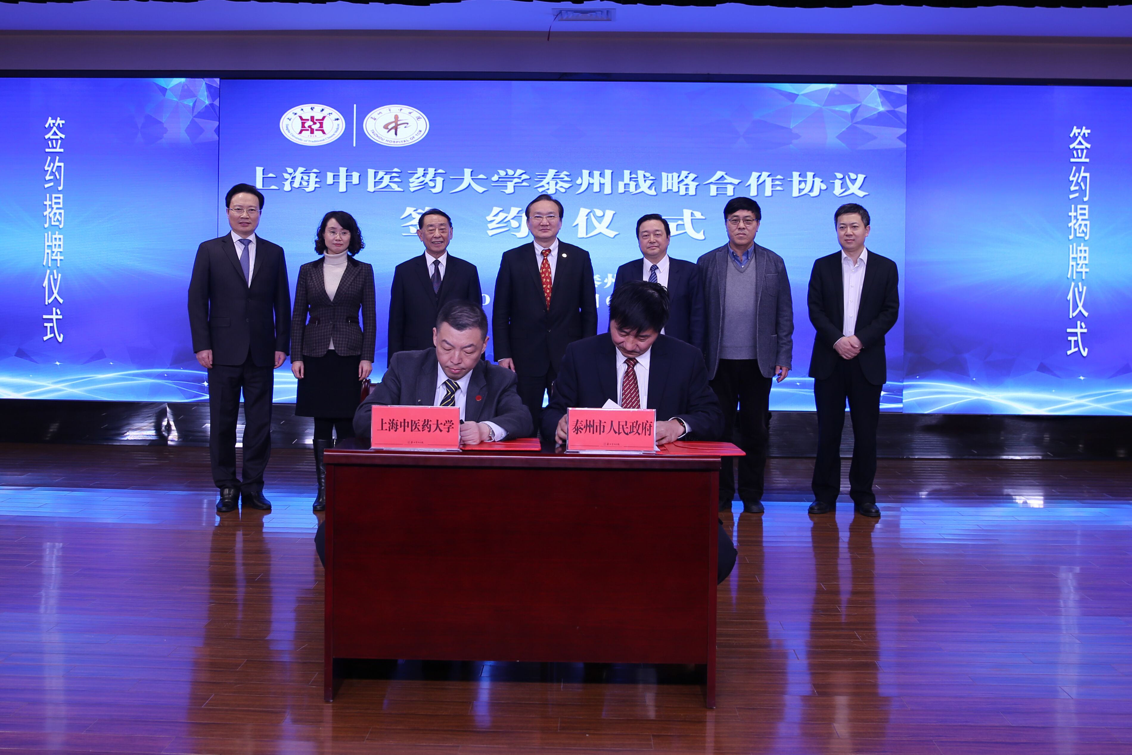 12月7日下午,上海中醫(yī)藥大學泰州戰(zhàn)略合作協(xié)議簽約揭牌儀式在泰州市中醫(yī)院東院會議中心舉行。國醫(yī)大師唐祖宣,國家中醫(yī)藥管理局政策法規(guī)與監(jiān)督司巡視員劉文武,上海中醫(yī)藥大學校長徐建光,副校長胡鴻毅,江蘇省衛(wèi)健委中醫(yī)醫(yī)政處處長石健峰,國醫(yī)大師薛伯壽大弟子、中國中醫(yī)科學院廣安門醫(yī)院教育處處長姚魁武,泰州市政協(xié)主席盧佩民,泰州市人民政府副市長王學鋒,泰州市衛(wèi)計委黨委書記、主任徐洪濤,副巡視員王彬,泰州市中醫(yī)院黨委書記、院長王華和上海中醫(yī)藥大學、泰州市衛(wèi)計委、泰州市中醫(yī)院有關負責人出席簽約儀式。盧佩民、徐建光為上海中醫(yī)藥大學科創(chuàng)實踐基地揭牌;胡鴻毅副校長宣讀設立上海中醫(yī)藥大學科創(chuàng)實踐基地的決定;胡鴻毅、徐洪濤共同簽署上海中醫(yī)藥大學泰州戰(zhàn)略合作協(xié)議;盧佩民、國醫(yī)大師唐祖宣為唐祖宣國醫(yī)大師泰州工作室揭牌;劉文武、姚魁武為薛伯壽國醫(yī)大師泰州工作室揭牌;國醫(yī)大師唐祖宣、徐建光、王學鋒致辭。泰州市政府副秘書長吉志銘主持簽約儀式。