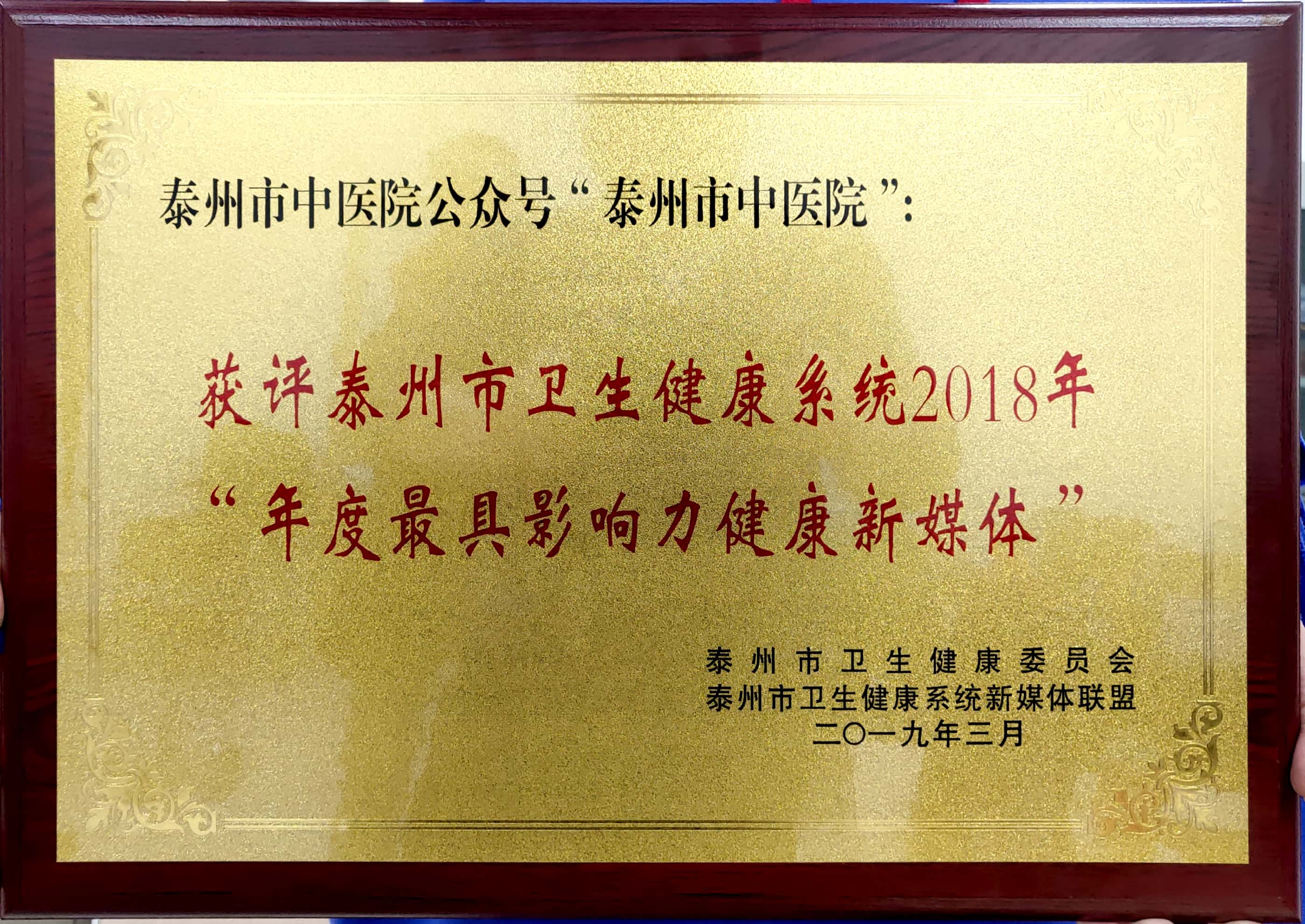 “泰州市中醫(yī)院”公眾號(hào)獲泰州市衛(wèi)生健康系統(tǒng)2018“年度最具影響力健康新媒體”。