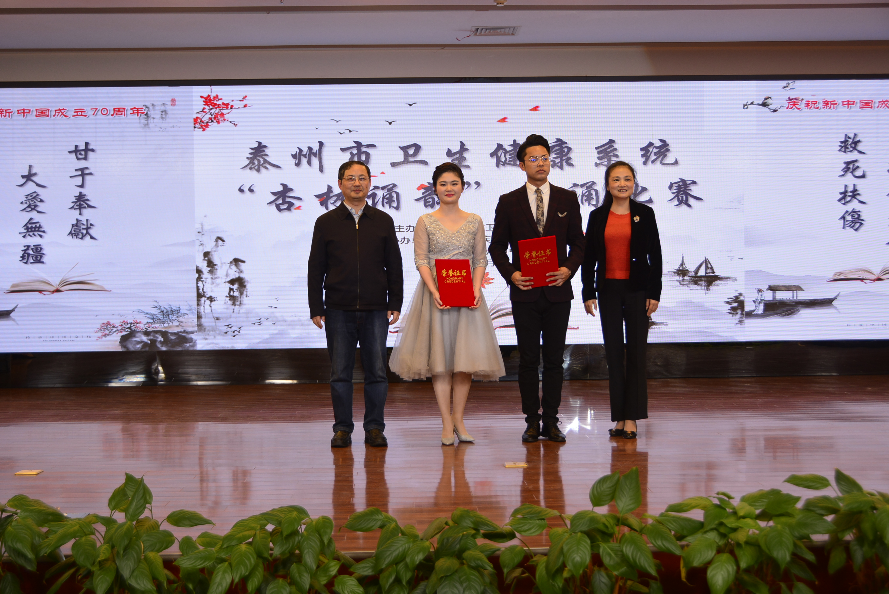 為推動全市衛(wèi)生健康文化建設(shè),進(jìn)一步弘揚(yáng)廣大醫(yī)務(wù)工作者救死扶傷、大愛無疆的職業(yè)精神,在“4.23世界讀書日” 即將來臨之際,4月18日下午,泰州市衛(wèi)生健康系統(tǒng)在我院舉辦了主題為“杏林誦韻”朗誦比賽活動,13個醫(yī)療機(jī)構(gòu)單位的15支參賽團(tuán)隊(duì)(選手)登臺競技,用朗誦這種文藝形式謳歌全市衛(wèi)生健康事業(yè)發(fā)展的光輝成就和優(yōu)秀醫(yī)務(wù)工作者的感人事跡。來自全市衛(wèi)生健康系統(tǒng)300余醫(yī)護(hù)工作人員參加了朗誦比賽活動。