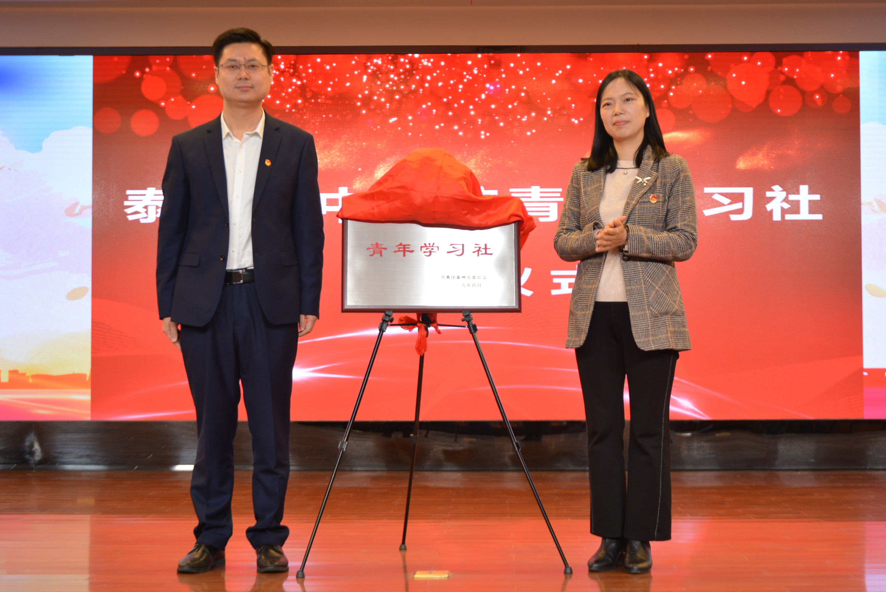 共青團(tuán)泰州市委書記殷俊、南京中醫(yī)藥大學(xué)團(tuán)委副書記時(shí)孝春為泰州市中醫(yī)院青年學(xué)習(xí)社揭牌。