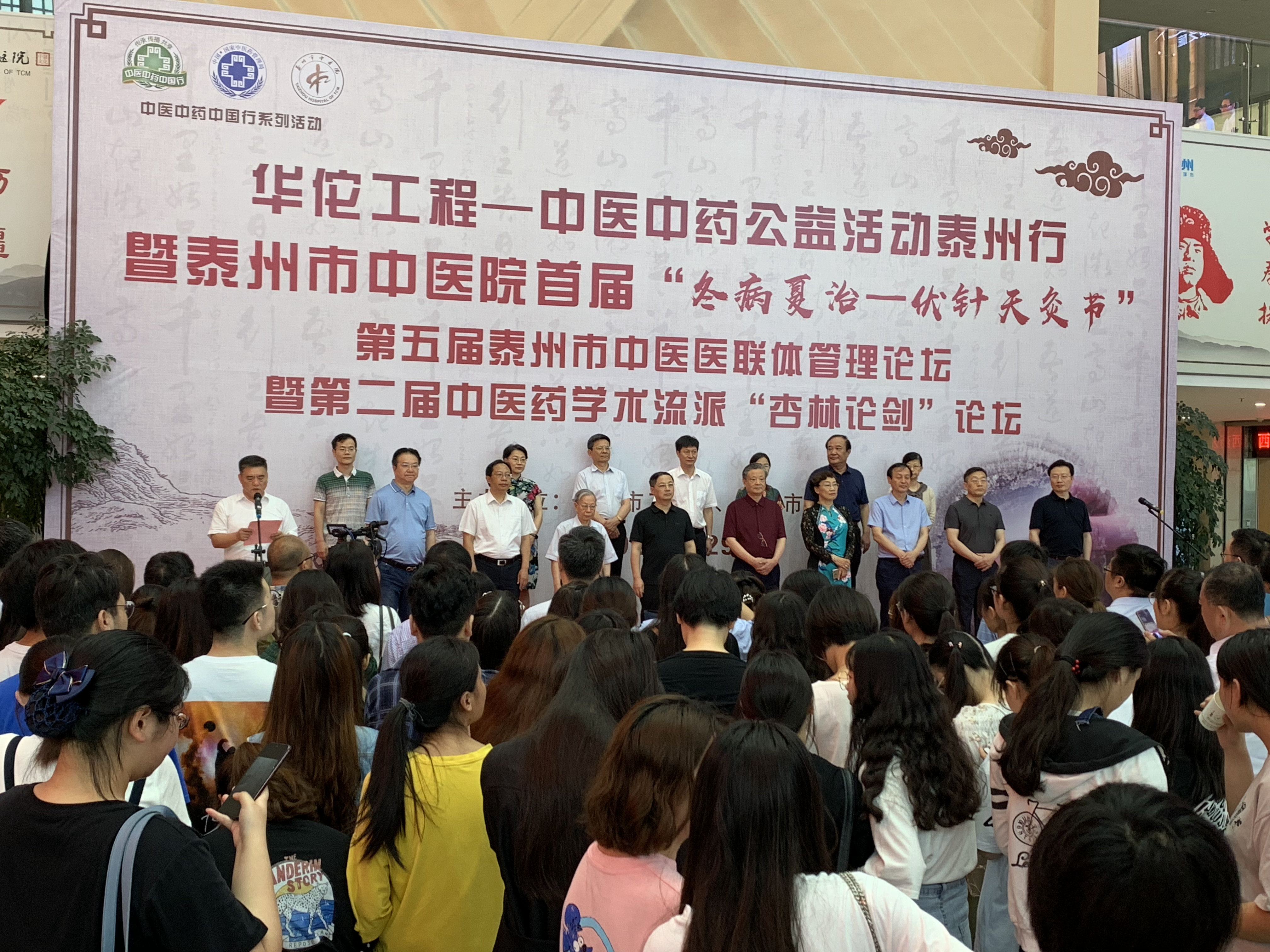 6月29日上午,泰州市中醫(yī)院“中醫(yī)中藥中國(guó)行”泰州站啟動(dòng)儀式暨華佗工程—中醫(yī)中藥公益活動(dòng)泰州行、泰州市中醫(yī)院首屆“冬病夏治—伏針天灸節(jié)”第五屆泰州市中醫(yī)醫(yī)聯(lián)體管理論壇暨第二屆中醫(yī)藥學(xué)術(shù)流派“杏林論劍”論壇活動(dòng)正式開(kāi)始,開(kāi)幕式在泰州市中醫(yī)院東院區(qū)舉行,國(guó)醫(yī)大師、中國(guó)醫(yī)促會(huì)中醫(yī)分會(huì)會(huì)長(zhǎng)王琦,國(guó)醫(yī)大師、廣州中醫(yī)藥大學(xué)首席教授禤國(guó)維,中國(guó)醫(yī)促會(huì)中醫(yī)分會(huì)秘書長(zhǎng)崔詠梅,廣東省中醫(yī)院黨委書記翟理祥,泰州市衛(wèi)健委黨委書記、主任劉宏鳴,河南省中醫(yī)院院長(zhǎng)崔應(yīng)麟,西南醫(yī)科大學(xué)附屬中醫(yī)院院長(zhǎng)楊思進(jìn),山東中醫(yī)藥大學(xué)第二附屬醫(yī)院院長(zhǎng)徐云生,泰州市衛(wèi)健委副主任翟德祥,開(kāi)封市中醫(yī)院院長(zhǎng)龐國(guó)明,鄭州市中醫(yī)院院長(zhǎng)徐學(xué)功,菏澤市中醫(yī)院院長(zhǎng)郝敬忠,安徽中醫(yī)藥大學(xué)針灸推拿學(xué)院院長(zhǎng)唐巍,泰州市中醫(yī)院黨委書記、院長(zhǎng)王華,廣東省中醫(yī)院傳統(tǒng)療法中心主任陳秀華,北京中醫(yī)藥大學(xué)東方醫(yī)院針灸科主任胡慧,江蘇省中醫(yī)院教育處處長(zhǎng)陳理,南京中醫(yī)藥大學(xué)針灸推拿學(xué)博士王欣君,禤國(guó)維國(guó)醫(yī)大師傳承工作室負(fù)責(zé)人劉熾,此外參加活動(dòng)的還有各市(區(qū))衛(wèi)健委分管領(lǐng)導(dǎo)、中醫(yī)科長(zhǎng),各二、三級(jí)中醫(yī)院院長(zhǎng),相關(guān)科(室)領(lǐng)導(dǎo)及醫(yī)療骨干,各二、三級(jí)人民醫(yī)院中醫(yī)科科長(zhǎng)及醫(yī)療骨干,各鄉(xiāng)鎮(zhèn)衛(wèi)生院院領(lǐng)導(dǎo)和相關(guān)人員,泰州市中醫(yī)院領(lǐng)導(dǎo)班子成員、中層干部和廣大市民群眾等參加了本次活動(dòng)。