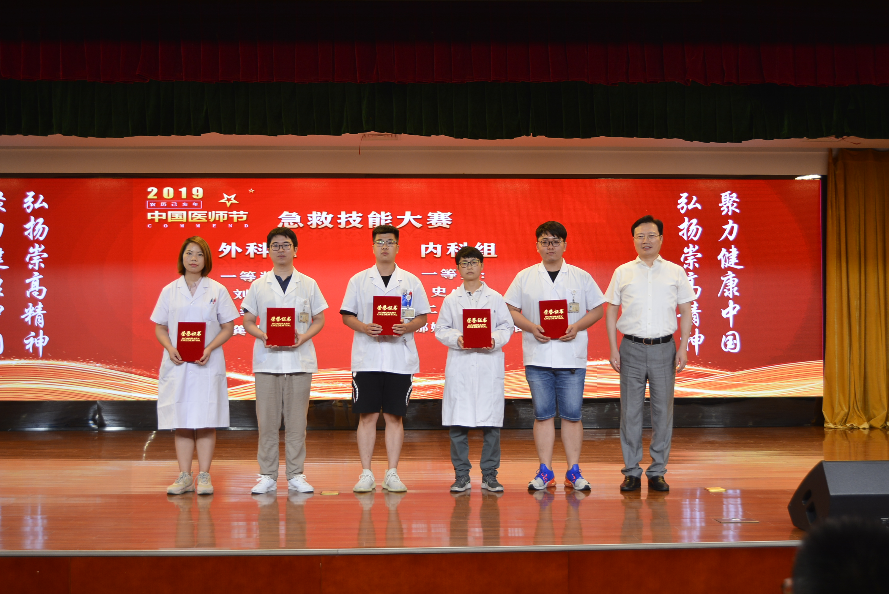 院領(lǐng)導(dǎo)為急救技能大賽獲獎(jiǎng)?wù)哳C獎(jiǎng)
